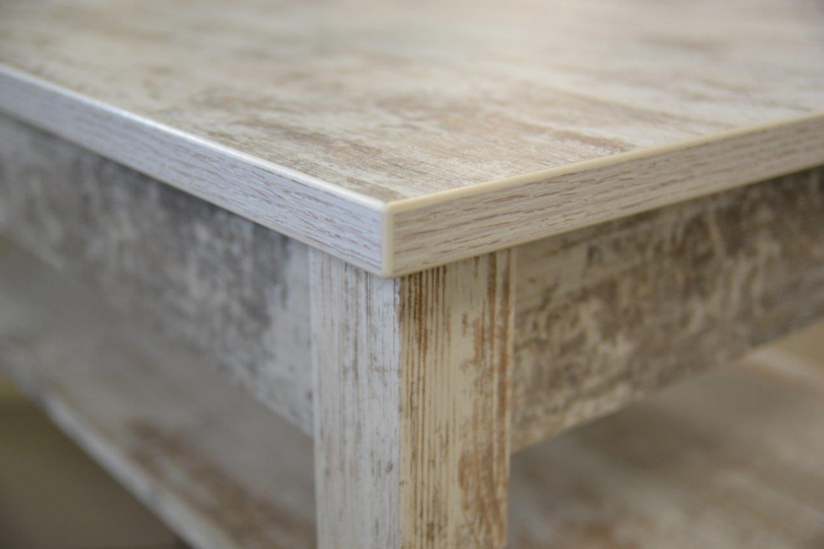 Konferenční stolek Samir je vyroben z kvalitního lamina ve velmi oblíbeném moderním dekoru borovice bílá. Lamino je odolné vůči poškrábání, vlhkosti a vysokým teplotám. Stolek je vhodným doplňkem k bytové stěně Samir bílá borovice, kterou také najdete v naší nabídce. Je dodávaný v demontu a součástí je montážní plánek včetně všech potřebných spojovacích materiálů.