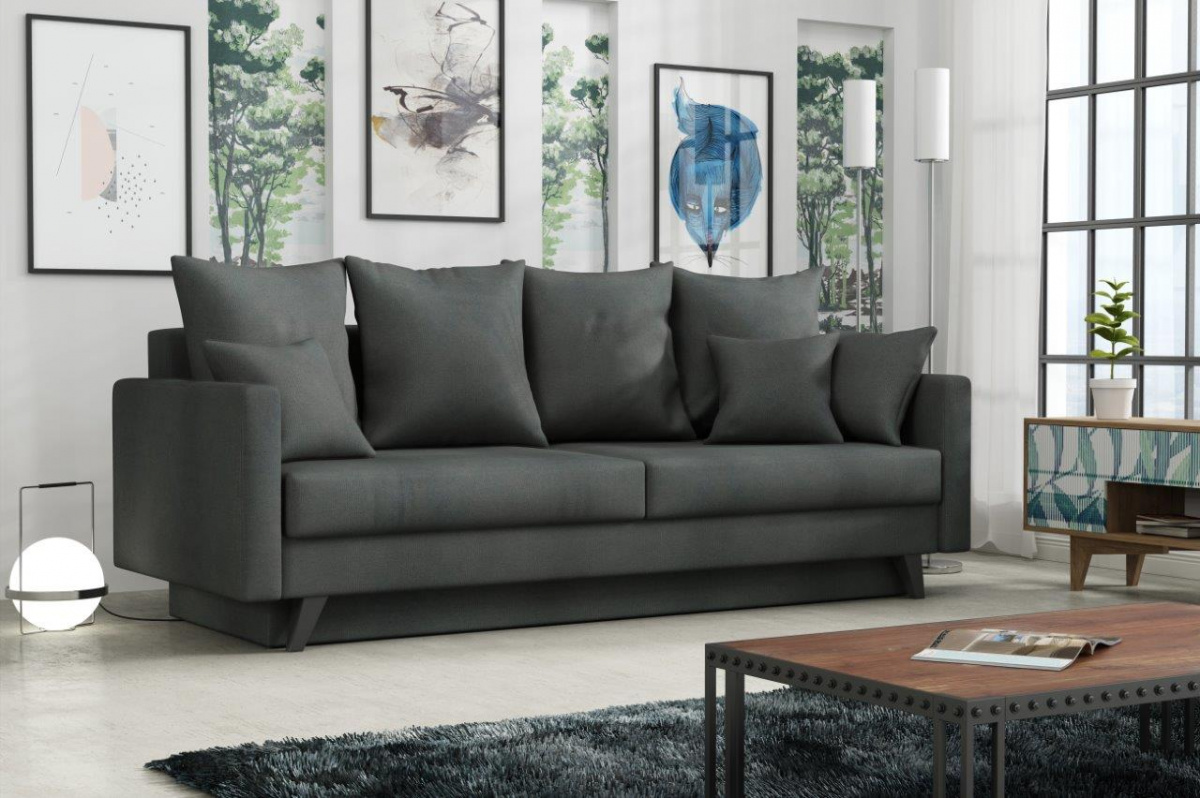 Pohovka Odeta je vyrobena v elegantním designu s prvky skandinávského stylu. Její velkou předností je pohodlí a praktičnost. Výplň sedáku tvoří kombinace vlnitých pružin s pružinami bonell a to vše je navíc doplněno kvalitní PUR pěnou. Pohodlí při sezení mj. poskytuje dostatek polštářů, které si můžete přizpůsobit tak, aby se Vám pohodlně sedělo a odpočívalo. Praktickou stánkou pohovky je možnost rozložení. Jednoduchým rozložením pomocí automatu získáte dostatečně velké lůžko pro příležitostné přespání Vaší návštěvy. Pohovka má také nezbytný úložný prostor, který využijete např. na lůžkoviny. Pohovka je celočalouněná, takže ji můžete umístit i do prostoru. Výborně se hodí do obývacího pokoje, do pracovny či pokoje pro hosty. Pohovku nabízíme v několika trendy barvách. V ceně pohovky jsou 4 velké a 3 malé polštáře. Ostatní vyobrazené dopňky a dekorace nejsou v ceně. Zobrazení barev na fotografii se může od skutečnosti lišit.