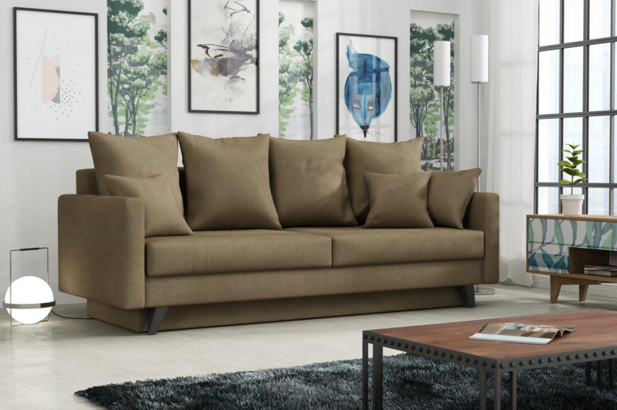 Pohovka Odeta je vyrobena v elegantním designu s prvky skandinávského stylu. Její velkou předností je pohodlí a praktičnost. Výplň sedáku tvoří kombinace vlnitých pružin s pružinami bonell a to vše je navíc doplněno kvalitní PUR pěnou. Pohodlí při sezení mj. poskytuje dostatek polštářů, které si můžete přizpůsobit tak, aby se Vám pohodlně sedělo a odpočívalo. Praktickou stánkou pohovky je možnost rozložení. Jednoduchým rozložením pomocí automatu získáte dostatečně velké lůžko pro příležitostné přespání Vaší návštěvy. Pohovka má také nezbytný úložný prostor, který využijete např. na lůžkoviny. Pohovka je celočalouněná, takže ji můžete umístit i do prostoru. Výborně se hodí do obývacího pokoje, do pracovny či pokoje pro hosty. Pohovku nabízíme v několika trendy barvách. V ceně pohovky jsou 4 velké a 3 malé polštáře. Ostatní vyobrazené dopňky a dekorace nejsou v ceně. Zobrazení barev na fotografii se může od skutečnosti lišit.