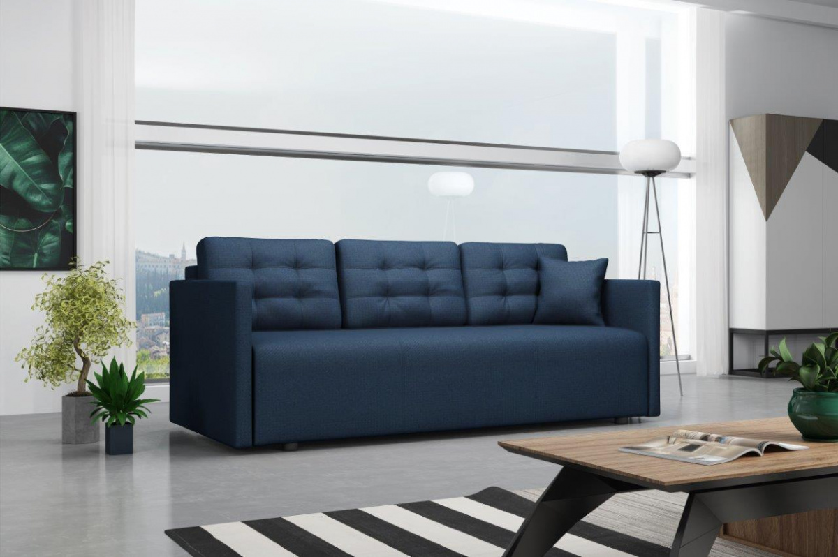 Pohovka Babeta je vyrobena v elegantním designu s nádechem retro stylu. Její velkou předností je pohodlí a praktičnost. Výplň sedáku tvoří pružiny bonell s kvalitní PUR pěnou. Pohodlí při sezení poskytují polštáře, které si můžete přizpůsobit tak, aby se Vám pohodlně sedělo a odpočívalo. Praktickou stánkou pohovky je možnost rozložení. Jednoduchým rozložením pomocí automatu získáte dostatečně velké lůžko pro příležitostné přespání Vaší návštěvy. Pohovka má také nezbytný úložný prostor, který využijete např. na lůžkoviny. Pohovka je celočalouněná, takže ji můžete umístit i do prostoru. Výborně se hodí do obývacího pokoje, do pracovny či pokoje pro hosty. Pohovku nabízíme v několika trendy barvách. Vyobrazené dopňky a dekorace nejsou v ceně. Zobrazení barev na fotografii se může od skutečnosti lišit.