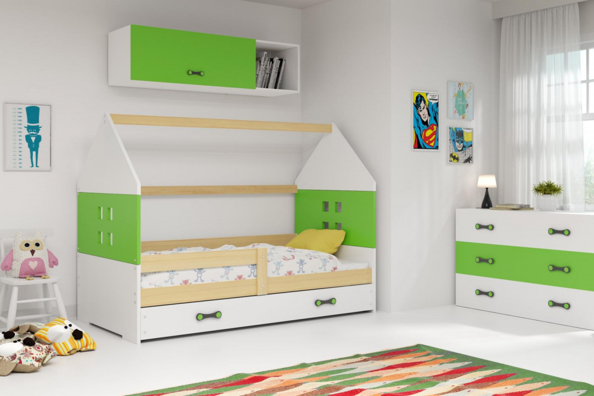 Dětská postel Dominik, osloví zejména ty, kteří pro své dítě hledají funkčnost, moderní design a kvalitu. V posteli Dominik, budou malé princezny i malí princové snít pohádkové sny. Rám postele je vyroben z borovicového dřeva, které je lakováno vodou ředitelným lakem, který je vhodný na dětský nábytek a vyhovuje normám o nezávadnosti. Bílé a barevné panely na bocích, jsou vyrobeny z kvalitní MDF desky. V ceně postele je zábrana, která zajistí bezpečný a klidný spánek Vašeho dítěte. Zábranu si můžete podle potřeby umístit na pravou, nebo levou stranu postele. Součástí postele je také praktický úložný prostor na kolečkách, který můžete využít např. na hračky nebo lůžkoviny. V ceně postel je rošt a pěnová matrace. Plocha pro spaní je 80x160 cm. Postel je dodávána v demontu a součástí je montážní plánek včetně všech potřebných spojovacích materiálů. Postel nabízíme v několika barevných provedeních. Cena je uvedena za postel s úložným prostorem, zábranou a matrací, ostatní nábytek, dplňky a dekorace nejsou v ceně.