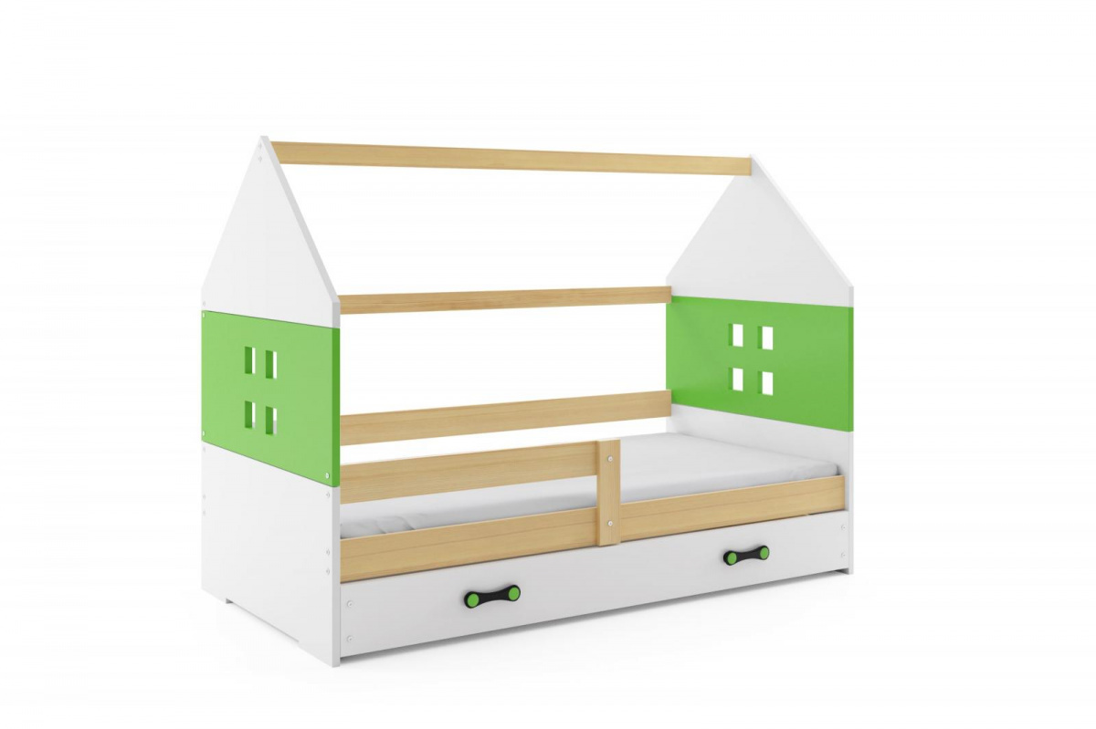Dětská postel Dominik 80x160 borovice/zelená/bílá