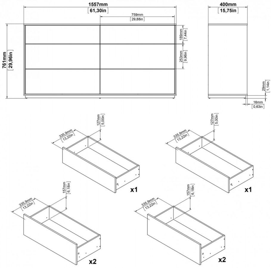 Komoda Secret se šesti zásuvkami, je pro svůj jednoduchý a nadčasový design, velmi oblíbeným modelem. Má rovné a čisté linie, které vytvoří útulný a příjemný interiér. Komoda má díky svému provední univerzální použití. Nabízí dostatek úložného prostoru a výborně se hodí např. do ložnice, do dětského i studentského pokoje, ale i do pracovny či předsíně. Komodu nabízíme v několika provedeních. Je dodávaná v demontu a součástí je montážní návod včetně všech potřebných spojovacích prvků. Vyobrazené dekorace nejsou v ceně.