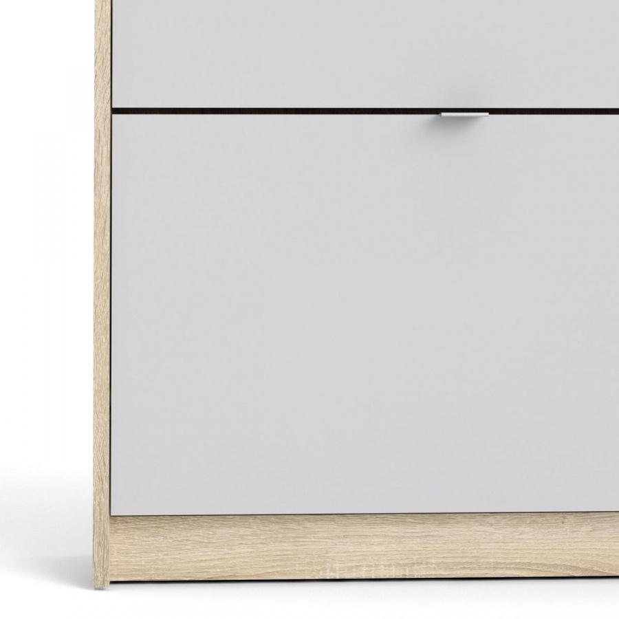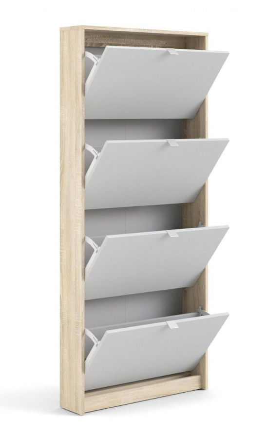 Po prostorném botníku touží každý milovník bot i početná rodina. Boty se hromadí v předsíni, vzniká chaos a zakopávání o boty je na denním pořádku. Zachraňte svou předsíň před nepořádkem a pořiďte si botník Flap s výklopnými dvířky. Botník nabízíme v několika variantách, které můžete různě kombinovat a jen na Vás a Vašem prostoru záleží kolik si těchto botníků koupíte a jak si je uspořádáte. V tomto případě se fantazii meze nekladou. Pro inspiraci jsou přiloženy fotografie s vyobrazením, jaké jsou možnosti sestavení. Vaše předsíň pak bude stále uklizená a zakopávání o boty se stane minulostí. Botník je vyrobený z lamina, které je odolné a snadné na údržbu a nabízíme ho v několika barevných provedeních. Je dodávaný v demontu a součástí balení je montážní návod včetně všech spojovacích prvků. Cena je uvedena za 1 kus botníku Flap se čtyřmi výklopnými přihrádkami. Vyobrazené doplňky a dekorace nejsou v ceně.