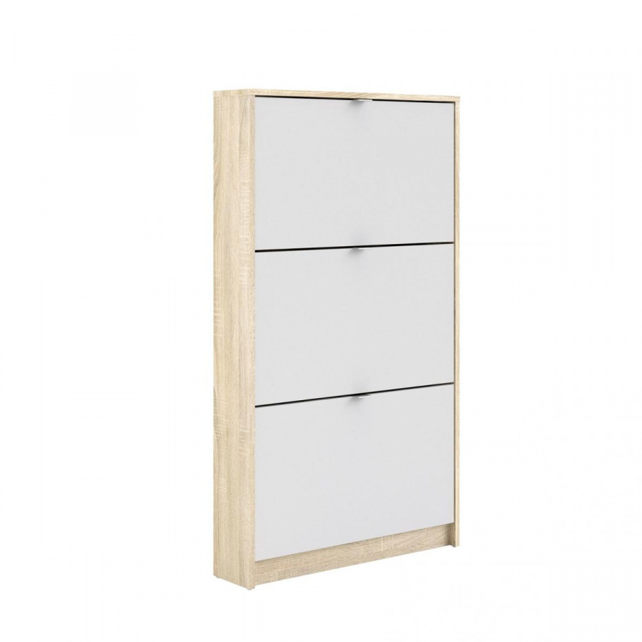 Zachraňte svou předsíň před nepořádkem a pořiďte si botník Flap s výklopnými dvířky. Botník nabízíme v několika variantách, které můžete různě kombinovat a jen na Vás a Vašem prostoru záleží kolik si těchto botníků koupíte a jak si je uspořádáte. V tomto případě se fantazii meze nekladou. Pro inspiraci jsou přiloženy fotografie s vyobrazením, jaké jsou možnosti sestavení. Díky svému provedení pojme botník Flap opravdu velké množství bot. Do každé výklopné přihrádky můžete ukládat boty ve dvou řadách. Vaše předsíň pak bude stále uklizená a zakopávání o boty se stane minulostí. Botník je vyrobený z lamina, které je odolné a snadné na údržbu a nabízíme ho v několika barevných provedeních. Je dodávaný v demontu a součástí balení je montážní návod včetně všech spojovacích prvků. Cena je uvedena za 1 kus botníku Flap se třemi výklopnými přihrádkami. Vyobrazené doplňky a dekorace nejsou v ceně.