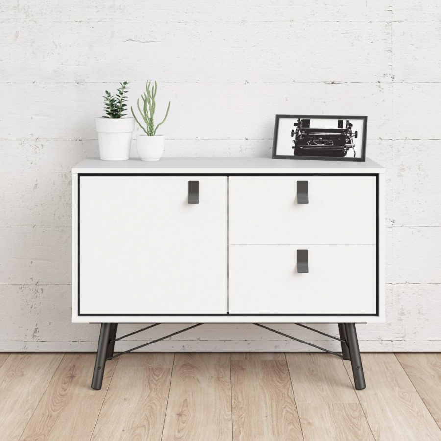 Komoda Rain je skvělou variantou, jak rozšířit úložný prostor ve Vašem bytě a zároveň mu ponechat vzdušnost. Komoda je vyráběná v souladu s ohledy na životní prostředí a navíc je praktická a funkční. Provedení komody nabízí dostatek úložného prostoru a spoustu možností využití nejen v obývacím pokoji. Výborně se hodí také do ložnice, ale i do pracovny či předsíně. Nožky, na kterých komoda stojí, jí dodávají nádech oblíbeného retro designu a prostor pod komodou se lépe udržuje v čistotě. Je vyrobená z lamina, které je odolné a snadné na údržbu a můžete ji doplnit dalšími prvky ve stejném designu. Cena je u vedena za komodu, která je vyobrazená na úvodní fotografii a je dodávaná v demontu. Součástí je montážní návod včetně všech spojovacích prvků. Vyobrazené doplňky a dekorace nejsou v ceně.