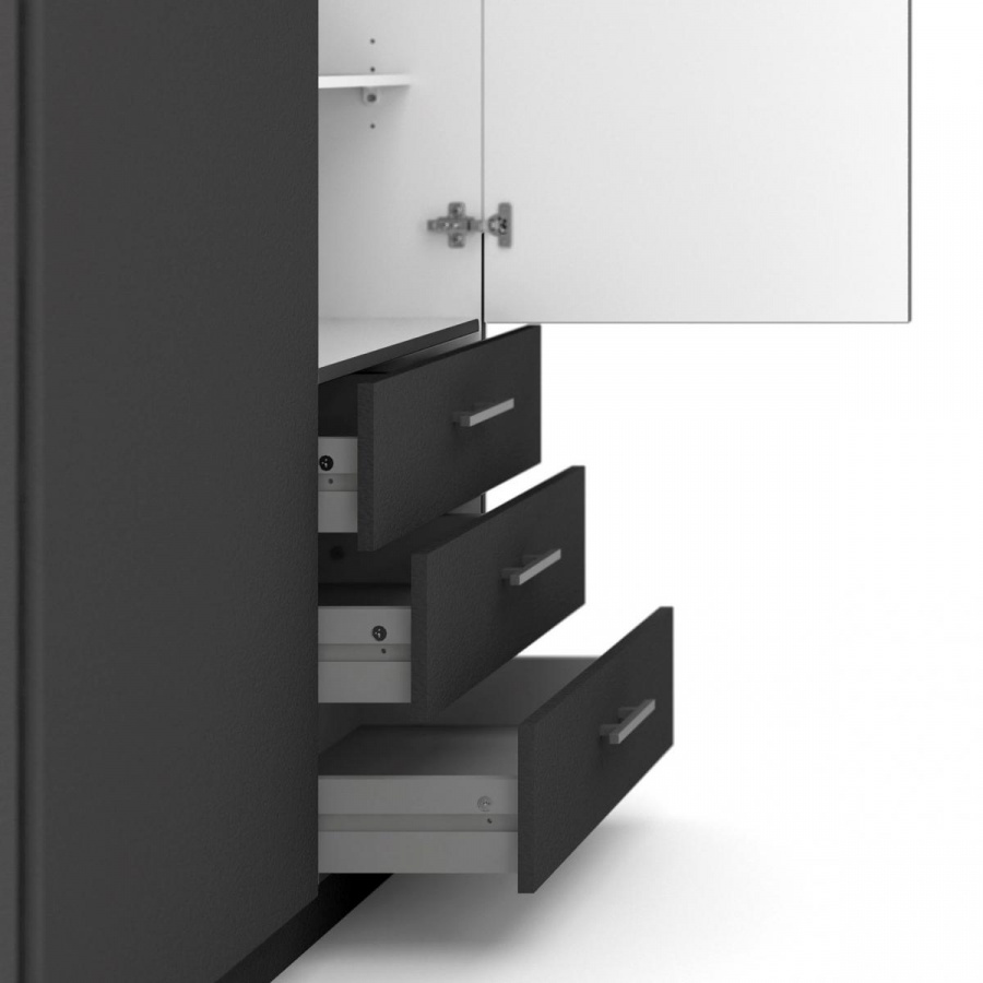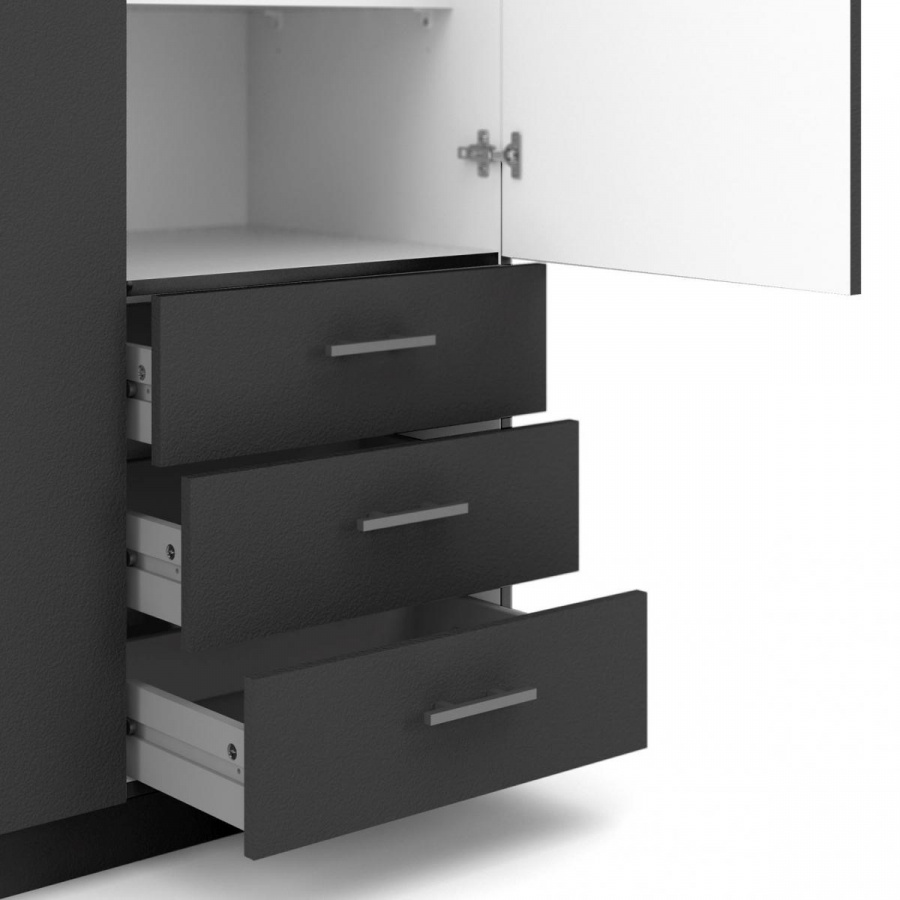 Šatní skříň Spike je vyrobená z lamina, má kvalitní zpracování, je vyráběná v souladu s ohledy na životní prostředí a navíc je praktická a funkční. Nabízí dostatek úložného prostoru a univerzální využití. Výborně se hodí např. do ložnice, do dětského i studentského pokoje, ale i do pracovny či předsíně. Skříň je vyrobená v jednoduchém a nadčasovém skandinávském stylu. Má rovné a čisté linie, které vytvoří útulný, pohodový a příjemný interiér. Skříň je také vybavena praktickými zásuvkami, které můžete využít např.na spodní prádlo. Je dodávaná v demontu. Součástí balení je montážní návod včetně všech spojovacích prvků.