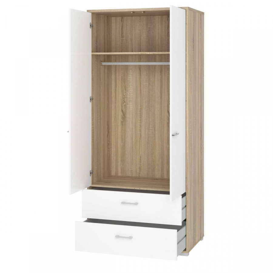 Šatní skříň Dante je vyrobená v jednoduchém a nadčasovém skandinávském stylu, který se hodí do každého interiéru. Při výrobě je kladen důraz na ekologii, takže je vyráběna v souladu s ohledy na životní prostředí. Své uplatnění najde nejen v ložnici, ale také v dětském nebo studentském pokoji i v předsíni. Praktické členění skříně, které je vyobrazeno v doplňkových fotografiích, poskytuje dostatek úložného prostoru a pomůže Vám tak udržet ve Vašich věcech přehled a pořádek. Skříň je dodávaná v demontu. Součástí balení je montážní návod včetně všech spojovacích prvků.