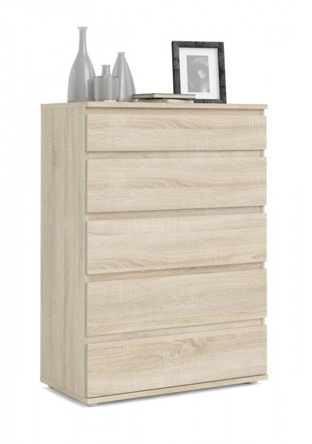 Komoda Nibby je skvělou variantou jak rošířit úložný prostor, kterého v každé domácnosti není nikdy dost. Komoda Nibby nabízí spoustu možností využití nejen v ložnici nebo obývacím pokoji, ale také v dětském pokoji, nebo v předsíni. Můžete do ní uložit např. oblečení, hračky, dokumenty, deskové hry, sbírku CD, nebo nezaložené fotografie. Komodu nabízíme v několika dekorech a jistě si najdete tu pravou, která bude ladit s Vaším interiérem. Komoda je vyrobená z lamina, které je velmi snadné na údržbu. Při výrobě je kladen důraz na ekologii. Je vyráběna v souladu s ohledy na životní prostředí a řadí se tak k eco-friendly výrobkům. Komoda je dodávaná v demontu. Součástí balení je montážní návod včetně všech potřebných spojovacích prvků. Vyobrazené doplňky a dekorace nejsou v ceně.