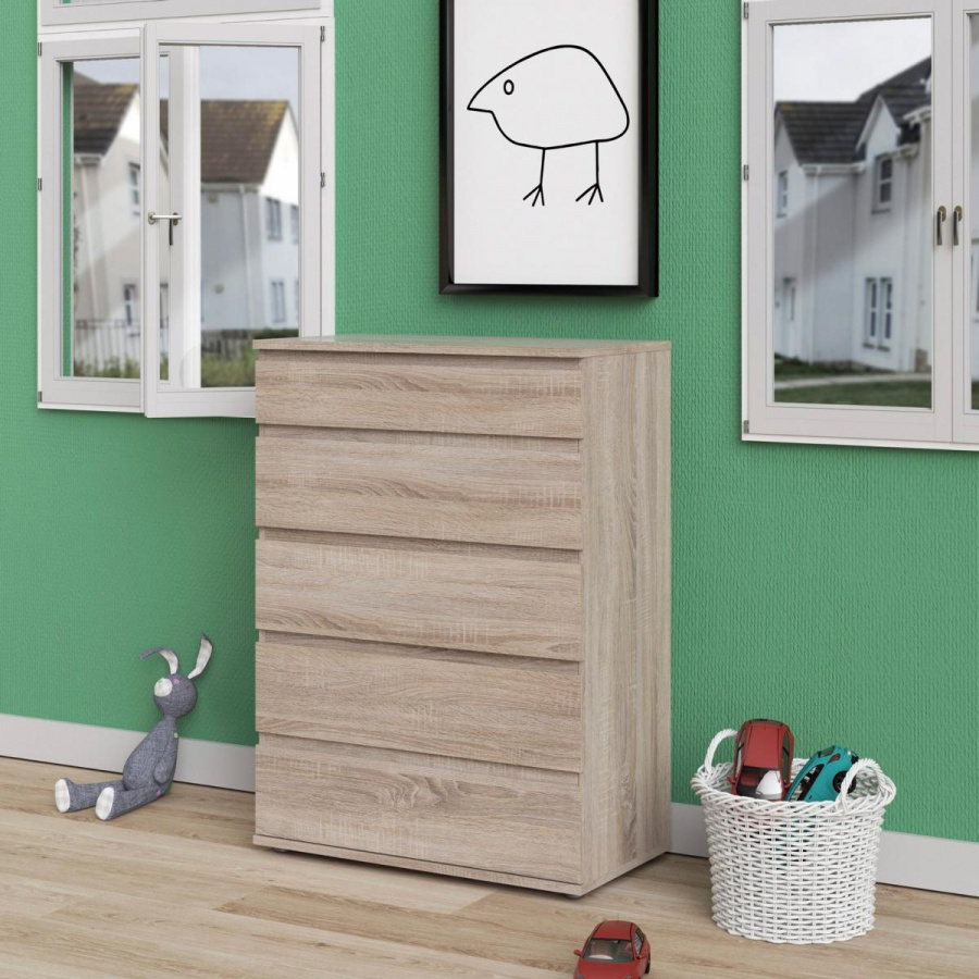 Komoda Nibby je skvělou variantou jak rošířit úložný prostor, kterého v každé domácnosti není nikdy dost. Komoda Nibby nabízí spoustu možností využití nejen v ložnici nebo obývacím pokoji, ale také v dětském pokoji, nebo v předsíni. Můžete do ní uložit např. oblečení, hračky, dokumenty, deskové hry, sbírku CD, nebo nezaložené fotografie. Komodu nabízíme v několika dekorech a jistě si najdete tu pravou, která bude ladit s Vaším interiérem. Komoda je vyrobená z lamina, které je velmi snadné na údržbu. Při výrobě je kladen důraz na ekologii. Je vyráběna v souladu s ohledy na životní prostředí a řadí se tak k eco-friendly výrobkům. Komoda je dodávaná v demontu. Součástí balení je montážní návod včetně všech potřebných spojovacích prvků. Vyobrazené doplňky a dekorace nejsou v ceně.