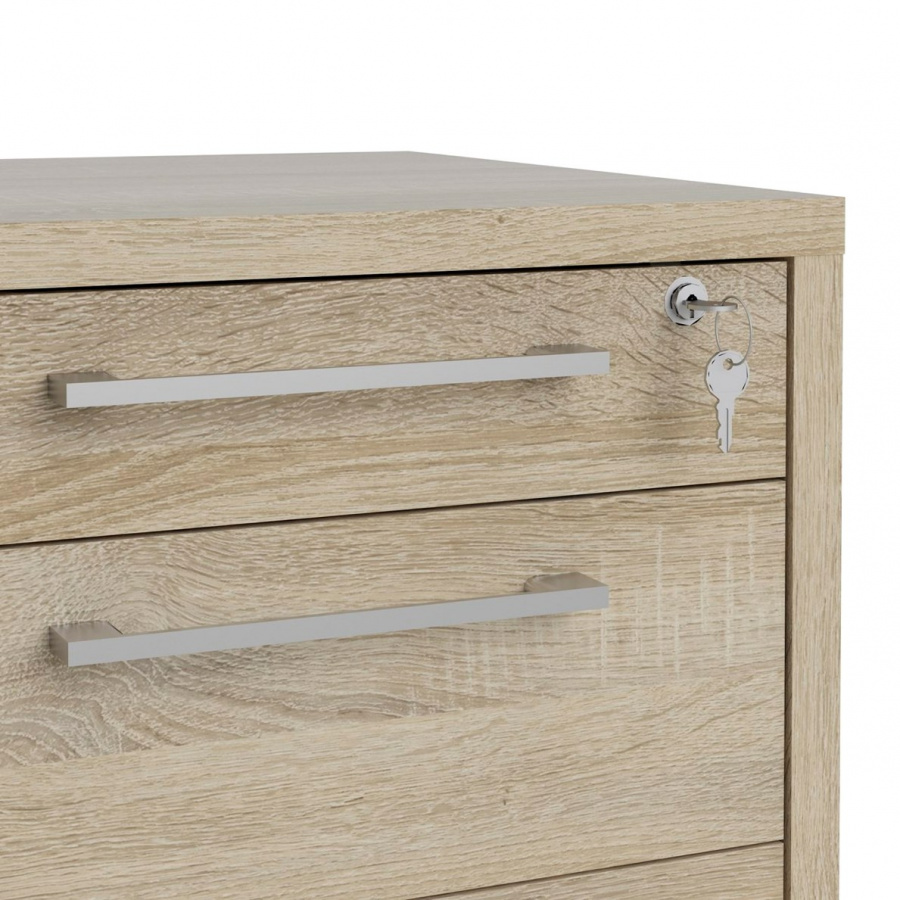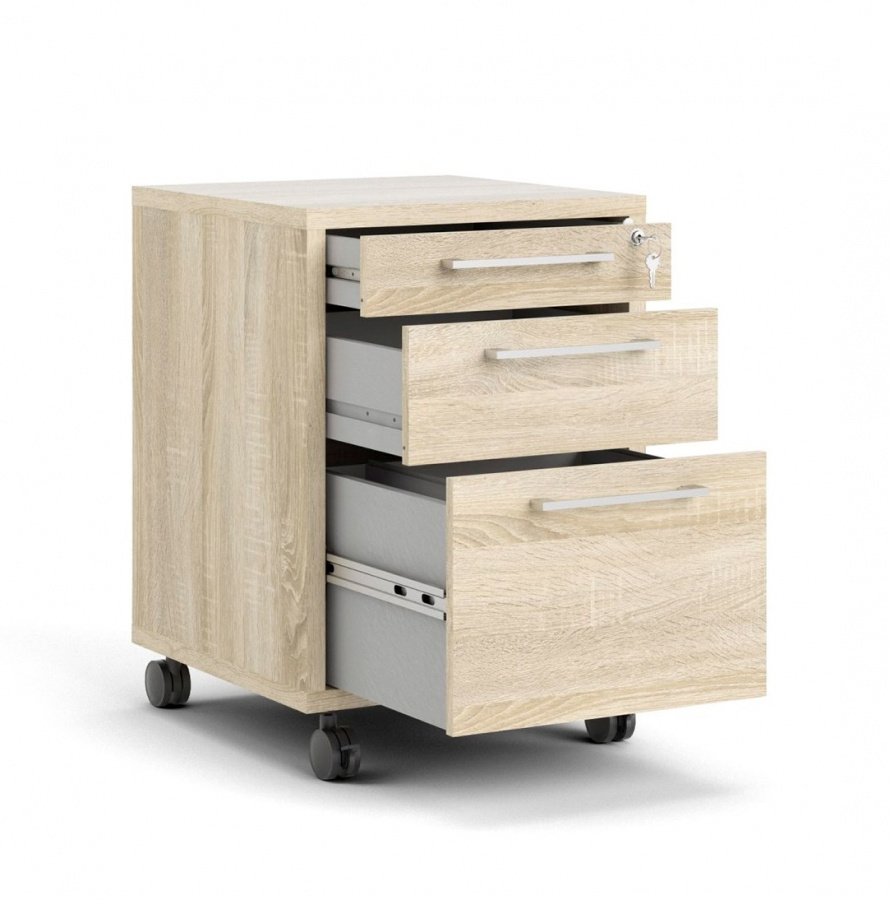 Kontejner Office na kolečkách slouží jako příruční úložný prostor u psacího stolu, který můžete využít na vše, co potřebujete mít vždy po ruce. Ať už to budou kancelářské potřeby nebo důležité listiny, vše bude mít své místo. Díky kolečkům můžete kontejer libovolně podle potřeby přemístit. Kolečka mají brzdy, takže kontejner po ustavení pevně stojí na svém místě. Kontejner je vyrobený z lamina, je opatřený zámkem a nabízíme ho v několika barevných dekorech. Je dodávaný v demontu. Součástí balení je montážní návod, včetně všech potřebných spojovacích prvků. Cena je uvedena za kontejner na kolečkách se zámkem.