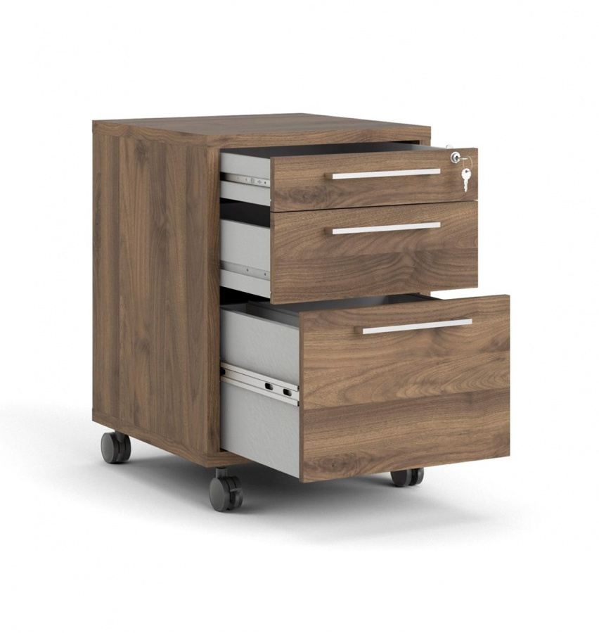 Kontejner Office na kolečkách slouží jako příruční úložný prostor u psacího stolu, který můžete využít na vše, co potřebujete mít vždy po ruce. Ať už to budou kancelářské potřeby nebo důležité listiny, vše bude mít své místo. Díky kolečkům můžete kontejer libovolně podle potřeby přemístit. Kolečka mají brzdy, takže kontejner po ustavení pevně stojí na svém místě. Kontejner je vyrobený z lamina, je opatřený zámkem a nabízíme ho v několika barevných dekorech. Je dodávaný v demontu. Součástí balení je montážní návod, včetně všech potřebných spojovacích prvků. Cena je uvedena za kontejner na kolečkách se zámkem.