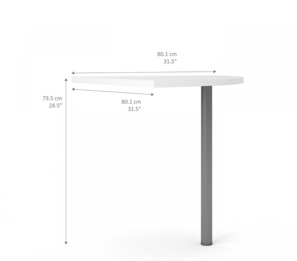 Rohový díl k psacímu stolu Office umožní z rovného stolu vytvořit stůl rohový, nebo stůl do tvaru U. Deska je vyrobená z lamina, které je odolné a snadné na údržbu, noha je kovová. Zboží je dodávané v demontu a součástí je montážní plánek včetně všech potřebných spojovacích materiálů. Cena je uvedena rohovou desku stolu bčetně podpěrné nohy, bez doplňků a dekorací.