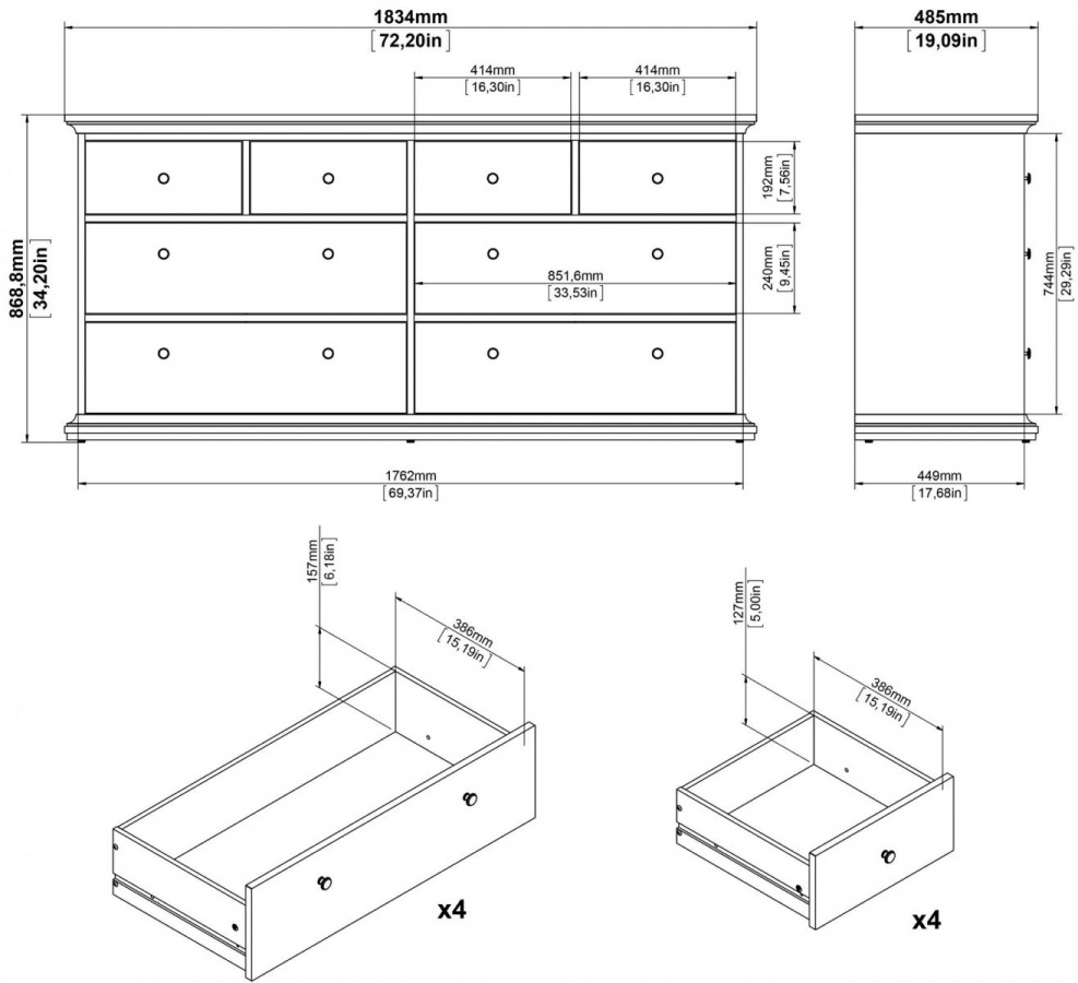 Komoda Provence díky svému provedení nabízí dostatek úložného prostoru a spoustu možností využití. Své uplatnění najde nejen v ložnici nebo obývacím pokoji, ale také v dětském pokoji, nebo v předsíni. Můžete do ní uložit např. oblečení, hračky, dokumenty, deskové hry, sbírku CD, nebo nezaložené fotografie. Komoda je dodávaná v demontu. Součástí balení je montážní návod včetně všech spojovacích prvků. Cena je uvedena za komodu z úvodní fotografie, bez doplňků a dekorací.
