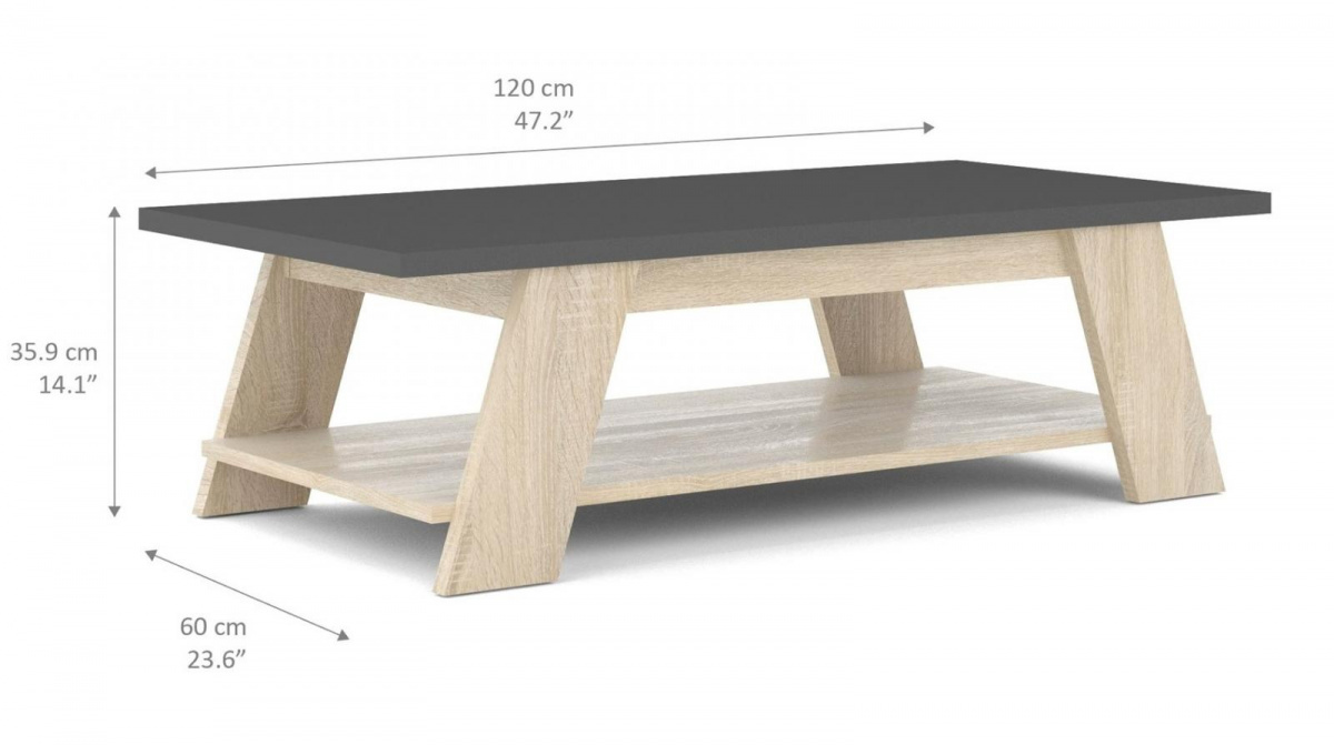 Konferenční stolek Liam je atraktivní stolek, který je vyrobený z lamina v souladu s ohledy na životní prostředí. Stolek je dostatečně velký na vše co si budete potřebovat odložit. Hrnek s kávou nebo čajem, talíř, knihu, telefon, notebook, nebo klidně i unavené nohy po celodenním maratonu. Stolek má také praktickou spodní polici, kde můžete můžete umístit vše ostatní, co Vám zrovna bude na stolku překážet, ale potřebujete mít po ruce. Můžou to být např.ovladače, nebo krabice s kapesníky atd. Stolek je dodáváný v demontu. Součástí balení je montážní plánek včetně všech potřebných spojovacích materiálů. Vyobrazené doplňky a dekorace nejsou v ceně.