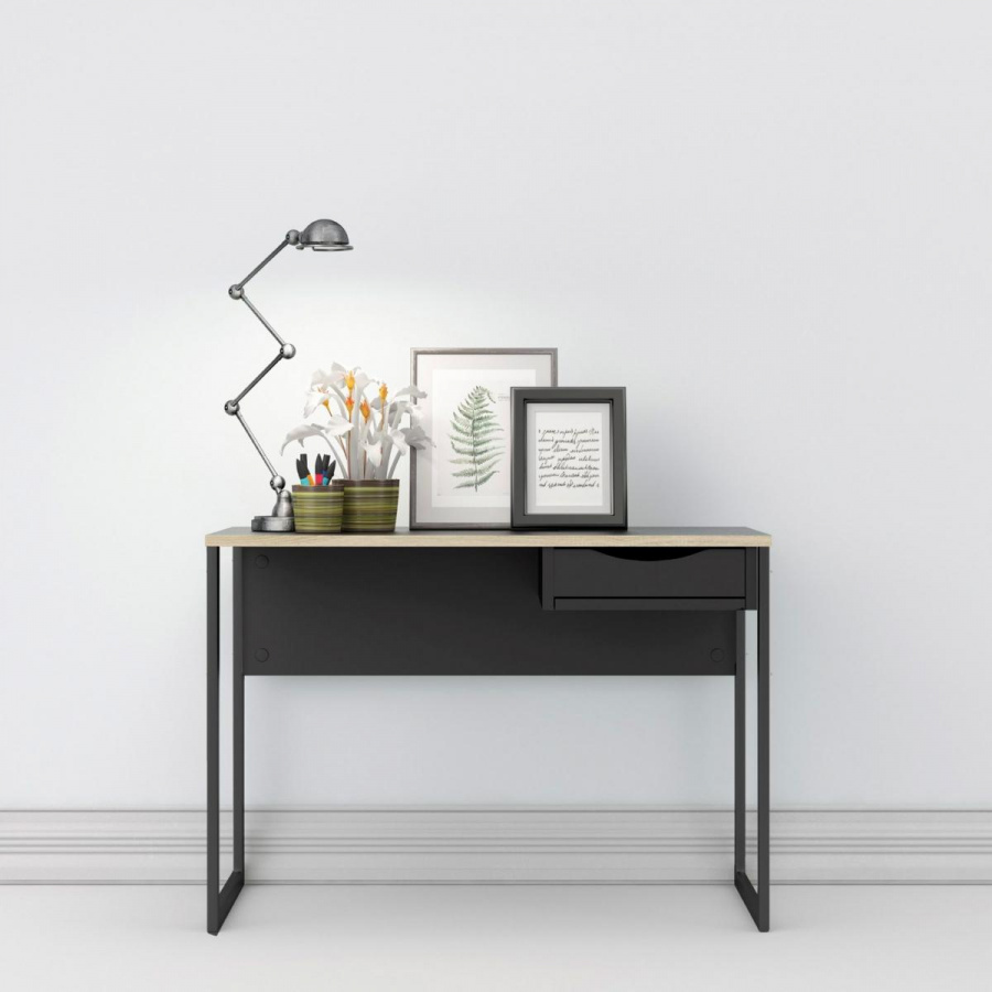 Máte doma studenta nebo školáka, který potřebuje psací stůl? Nebo potřebujete vybavit kancelář či domácí pracovnu? Pak je pro Vás psací stůl Felix perfektní řešení. Psací stůl Felix poskytuje dostatek pracovního prostoru a praktická zásuvka pojme všechny nezbytné pomůcky a v případě potřeby je vždy budete mít po ruce. Stůl je vyrobený z lamina, nohy stolu jsou z kovového U profilu. Díky tomuto minimalistickému provední působí stůl v i malé místnosti lehce a vzdušně. Stůl je dodávaný v demontu a součástí balení je montážní plánek včetně všech potřebných spojovacích materiálů. Nyní už stačí vybrat pohodlnou židli a pracovní či školní úspěchy se jen pohrnou. Vyobrazené doplňky a dekorace nejdou v ceně stolu.