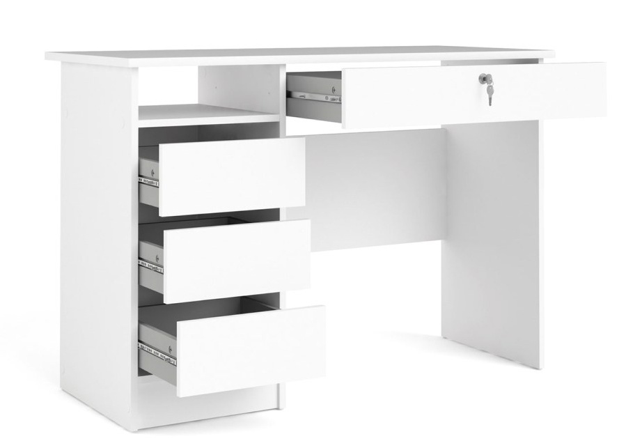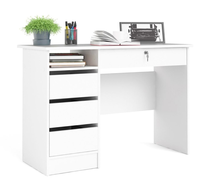 Psací stůl Felix je vhodný nejen do dětských a studentských pokojů. Můžete s ním vybavit i kancelář, nebo domácí pracovnu. Psací stůl Felix poskytuje dostatek pracovního i úložného prostoru. Praktické zásuvky pojmou všechny nezbytné pomůcky a v případě potřeby je vždy budete mít po ruce. V případě umístění v kanceláři jistě oceníte uzamykatelnou zásuvku na důležité dokumenty, nebo osobní věci. Stůl je vyrobený z lamina, které je odolné a snadné na údržbu. Při výrobě je kladen důraz na ekologi, je vyráběný v souladu s ohledy na životní prostředí a řadí se tak k eco-friendly výrobkům. Psací stůl Felix je dodávaný v demontu a součástí je montážní plánek včetně všech potřebných spojovacích materiálů. Vyobrazené doplňky a dekorace nejsou v ceně stolu.