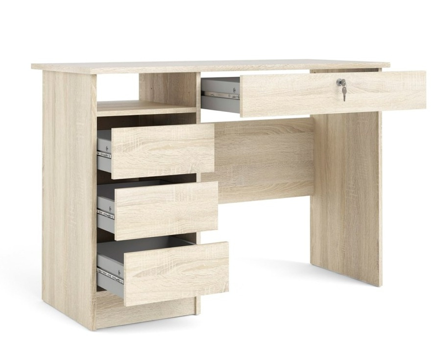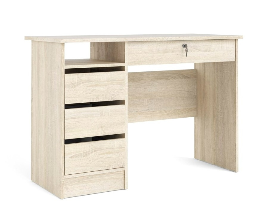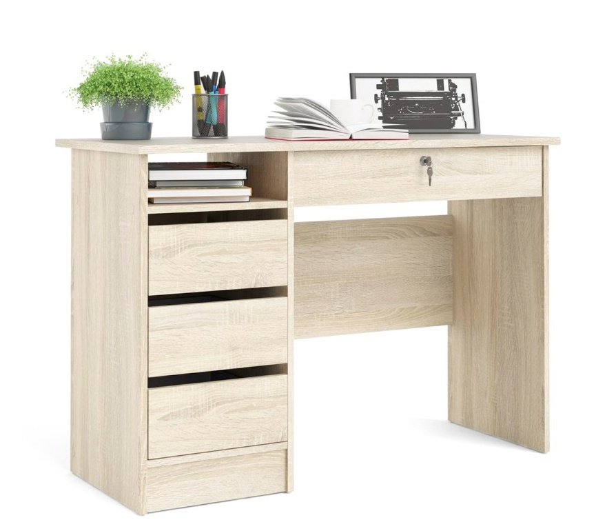 Psací stůl Felix je vhodný nejen do dětských a studentských pokojů. Můžete s ním vybavit i kancelář, nebo domácí pracovnu. Psací stůl Felix poskytuje dostatek pracovního i úložného prostoru. Praktické zásuvky pojmou všechny nezbytné pomůcky a v případě potřeby je vždy budete mít po ruce. V případě umístění v kanceláři jistě oceníte uzamykatelnou zásuvku na důležité dokumenty, nebo osobní věci. Stůl je vyrobený z lamina, které je odolné a snadné na údržbu. Při výrobě je kladen důraz na ekologi, je vyráběný v souladu s ohledy na životní prostředí a řadí se tak k eco-friendly výrobkům. Psací stůl Felix je dodávaný v demontu a součástí je montážní plánek včetně všech potřebných spojovacích materiálů. Vyobrazené doplňky a dekorace nejsou v ceně stolu.