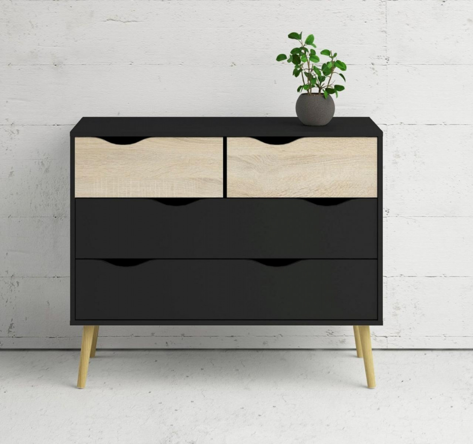 Komoda Retro 395 černá MAT/dub sonoma