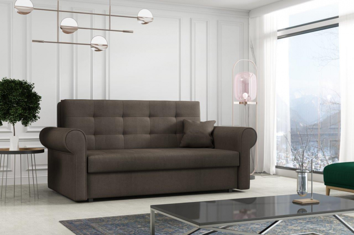 Rozkládací pohovka Vivian je díky svým rozměrům vhodná i do menších pokojů. Své uplatnění najde nejen v obývacím pokoji, ale také v dětském, studentském, nebo hostinském pokoji. Jednoduchým rozložením pomocí automatu, získáte lůžko k příležitostnému přespání Vaší návštěvy. Výplň sedáku tvoří vlnité pružiny v kombinaci s PUR pěnou. Pohovka je potažena kvalitní voděodolnou látkou a nabízíme ji v několika trendy odstínech. Pohovka disponuje i nepostradatelným úložným prostorem, který využijete např. na deku a polštář. V ceně pohovky je 1 dekorační polštář. Ostatní vyobrazené dekorace nejsou v ceně. Zobrazení barev produktu na fotograii se může nepatrně lišit od skutečnosti. Zobrazení barev na fotograii se může od skutečnosti lišit.