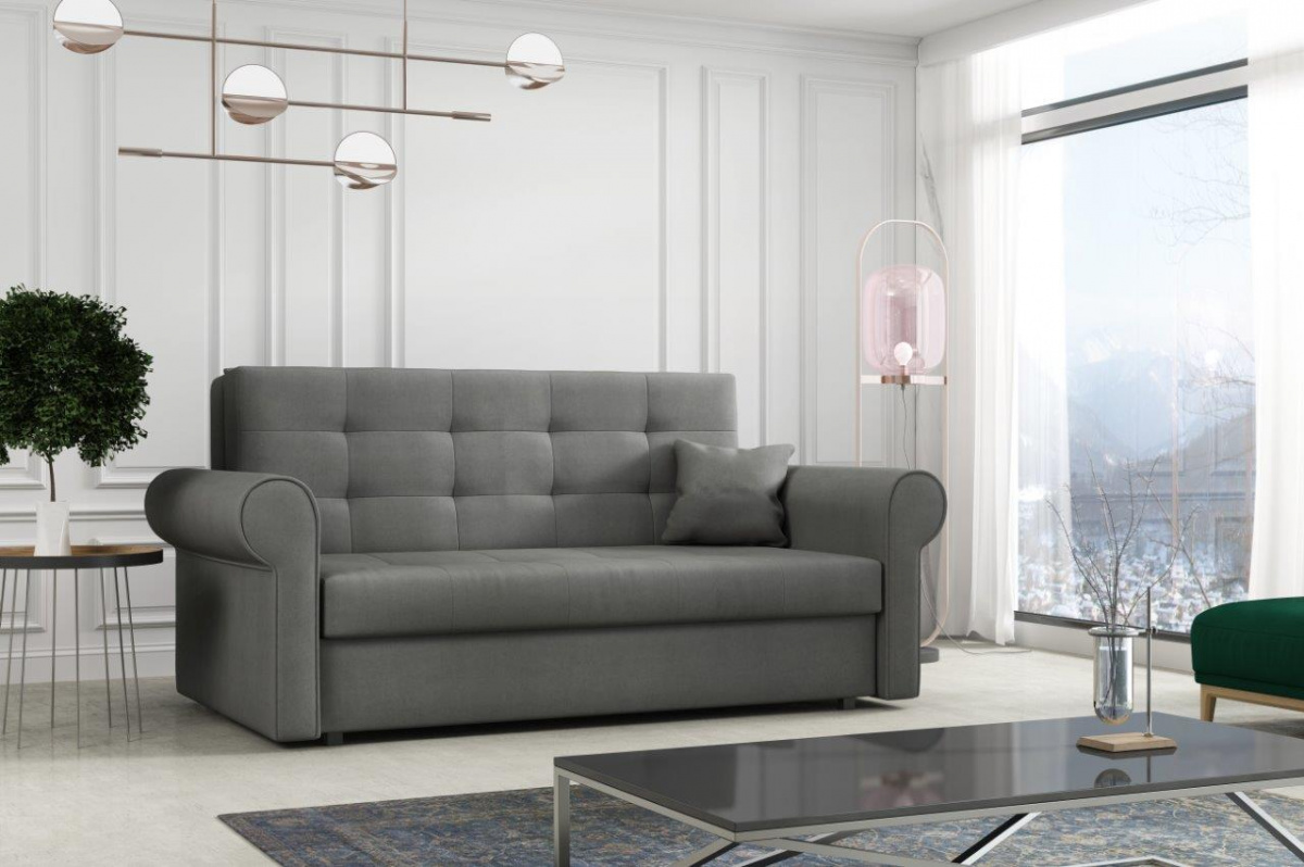 Rozkládací pohovka Vivian je díky svým rozměrům vhodná i do menších pokojů. Své uplatnění najde nejen v obývacím pokoji, ale také v dětském, studentském, nebo hostinském pokoji. Jednoduchým rozložením pomocí automatu, získáte lůžko k příležitostnému přespání Vaší návštěvy. Výplň sedáku tvoří vlnité pružiny v kombinaci s PUR pěnou. Pohovka je potažena kvalitní voděodolnou látkou a nabízíme ji v několika trendy odstínech. Pohovka disponuje i nepostradatelným úložným prostorem, který využijete např. na deku a polštář. V ceně pohovky je 1 dekorační polštář. Ostatní vyobrazené dekorace nejsou v ceně. Zobrazení barev produktu na fotograii se může nepatrně lišit od skutečnosti. Zobrazení barev na fotograii se může od skutečnosti lišit.
