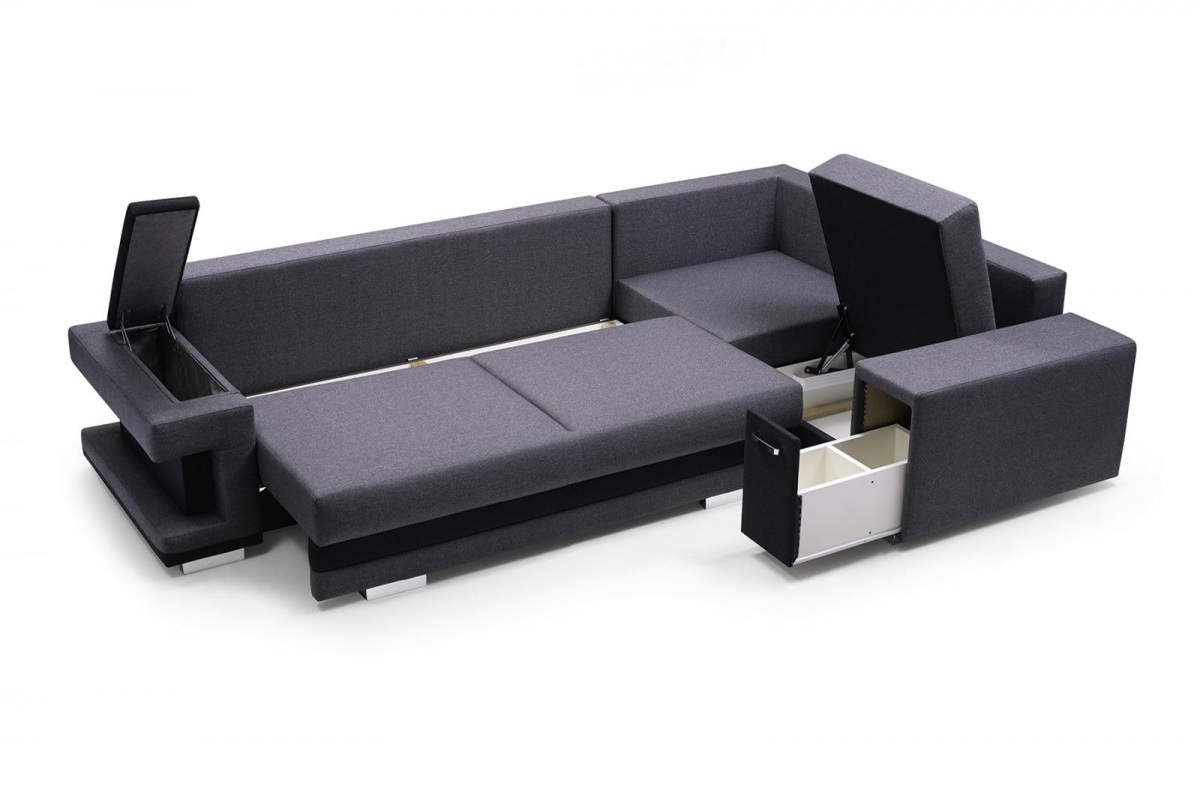 Sedací souprava Andy 1, je ideálním spojením pohodlí a moderního designu. Sedací souprava je potažena kvalitní látkou a je celočalouněná, takže ji můžete umístit i do prostoru. Výplň sedáku tvoří vlnité pružiny v kombinaci s kvalitní pěnou T-30. Toto spojení zaručuje velmi pohodlné sezení. Praktickou stránkou je možnost rozložení k příležitostnému přespání Vaší návštěvy. Samozřejmostí je i úložný prostor, který můžete využít třeba na lůžkoviny. Další úložné prostory najdete v područích a je jen na Vás jaké jim najdete využtití. Sedací soupravu nabízíme v levém i pravém provedení. Vyobrazené doplňky a dekorace nejsou v ceně. Zobrazení barev na fotografii se může od skutečnosti lišit.