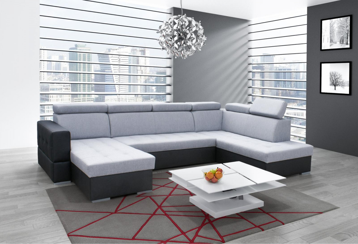 Sedací souprava Soft ve tvaru U, je velmi pohodlá, praktická a nabízí dostatek místa. Bude elegantní dominantou Vašeho obývacího pokoje a stane se příjemným centrem odpočinku a posezení s rodinou i přáteli. Praktickou stránku zajišťuje možnost rozložení a 2 úložné prostory. Jednoduchým rozkladem vznikne lůžko vhodné k příležitostnému spaní. Pohodlí při sezení zajišťuje výplň sedáků, kterou tvoří kombinace vlnitých pružin s kvalitní PUR pěnou. Při odpočinku, nebo sledování televize Vám zvýší pohodlí polohovací opěrky hlavy. Sedací souprava je potažena kvalitní látkou, která je zkombinovaná s EKO kůží černé barvy a nabízíme ji v levém i pravém provedení. Vvyobrazené dekorace nejsou v ceně. Úvodní fotografie je ilustrační. Sedací souprava bude dodaná v kombinaci potahových látek Inari 95/91 - vzorky jsou vyobrazeny v doplňkových fotografiích. Sedací část s opěrkami je v potahové látce Inari 95 - tmavě šedá, korpusy a područe jsou v potahové látce Inari 91 - světle šedá.