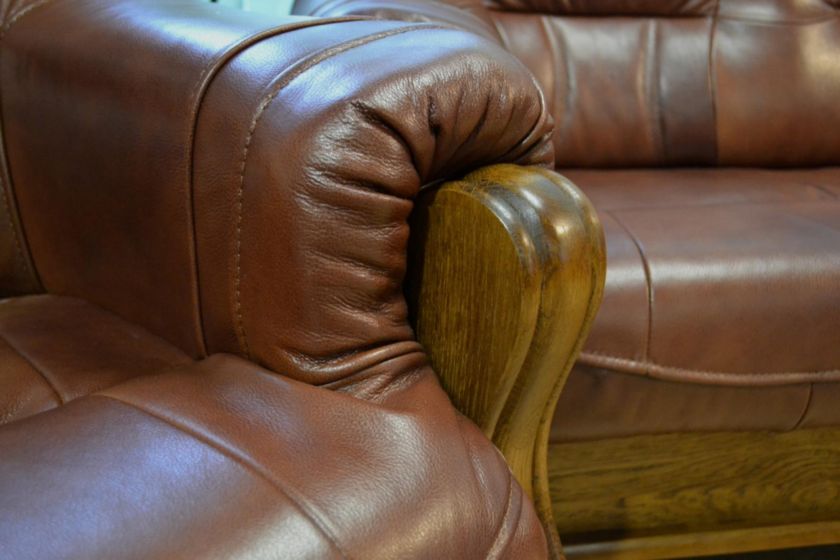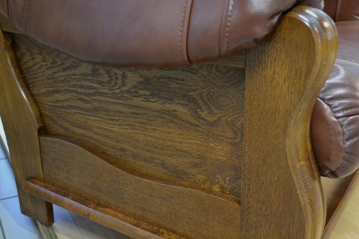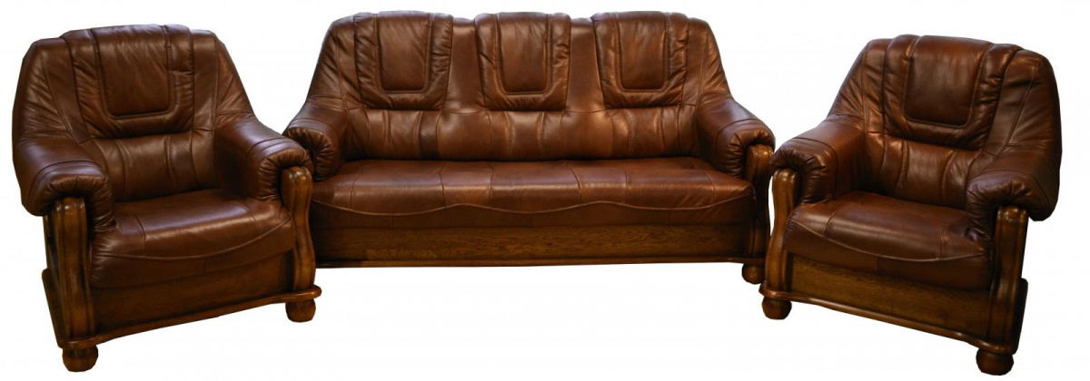 Stylová sedací souprava Royal nadchne každého, kdo má v oblibě rustikální nábytek. Její precizní a kvalitní zpracováním Vám zaručí luxus a pohodlí. Jakmile se do ní jednou usadíte, nebude se Vám chtít vstát. Polstrování sedací soupravy je vyrobené z kvalitní hovězí kůže. Konstrukce je vyrobená z masivního dubového dřeva a je vhodná i k umístění do prostoru. Sedací souprava je rozkládací. V případě potřeby ji jednoduše rozložíte k občasnému přespání Vaší návštěvy. Kůži je nutné čistit pouze za pomocí speciálních prostředků na čištění a konzervaci přírodních kůží, dřevo je třeba čistit suchým měkkým hadříkem. Zobrazení barev na fotograii se může od skutečnosti lišit. Vyobrazené dopňky a dekorace nejsou v ceně.