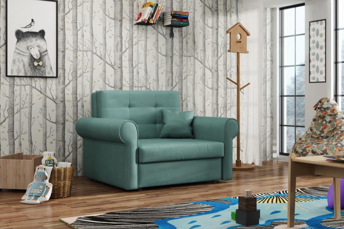 Rozkládací křeslo Vivian je vhodné do dětského, studentského, nebo hostinského pokoje. Jednoduchým rozložením pomocí automatu, získáte lůžko k příležitostnému přespání Vaší návštěvy, nebo kamaráda Vašich dětí. Výplň sedáku tvoří vlnité pružiny v kombinaci s PUR pěnou. Křeslo je potaženo kvalitní látkou s výběrem v několika trendy odstínů. Křeslo disponuje i nepostradatelným úložným prostorem, který využijete např. na deku a polštář. V ceně křesla je 1 dekorační polštářek. Ostatní vyobrazené doplňky a dekorace nejsou v ceně. Zobrazení barev na fotograii se může od skutečnosti lišit.