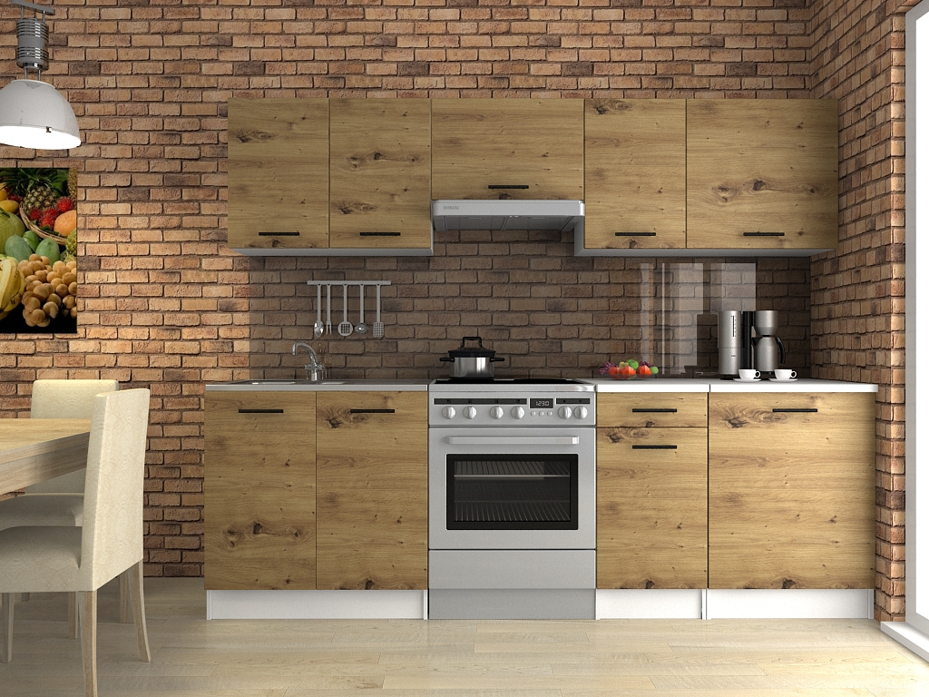 Kuchyňská linka Luigi je ideální volbou pro Vaši kuchyň. Je moderní a zároveň i praktická. Skříňky nabízejí dostatek úložného prostoru. Je vyrobená z lamina, které je odolné a snadné na údržbu. Díky svým rozměrům je vhodná i do malých kuchyní. Skříňky si můžete sestavit libovolně. Kuchyňská linka je dodávaná v demontu. Součástí balení je montážní plánek včetně všech potřebných spojovacích materiálů. Cena je uvedna za sestavu vyobrazenou na úvodní fotografii BEZ PRACOVNÍ DESKY. Kuchyň nabízíme v několika rozměrech i dekorech.Vyobrazené spotřebiče, dřez a dekorace nejsou v ceně.