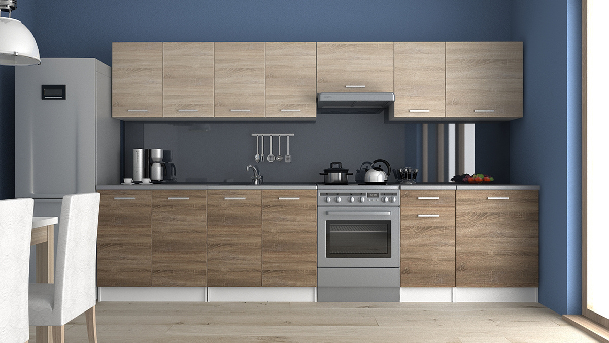 Kuchyňská linka Luigi je ideální volbou pro Vaši kuchyň. Je moderní a zároveň i praktická. Skříňky nabízejí dostatek úložného prostoru. Je vyrobená z lamina, které je odolné a snadné na údržbu. Díky svým rozměrům je vhodná i do malých kuchyní. Skříňky si můžete sestavit libovolně. Kuchyňská linka je dodávaná v demontu. Součástí balení je montážní plánek včetně všech potřebných spojovacích materiálů. Cena je uvedna za sestavu vyobrazenou na úvodní fotografii BEZ PRACOVNÍ DESKY. Kuchyň nabízíme v několika rozměrech i dekorech.Vyobrazené spotřebiče, dřez a dekorace nejsou v ceně.