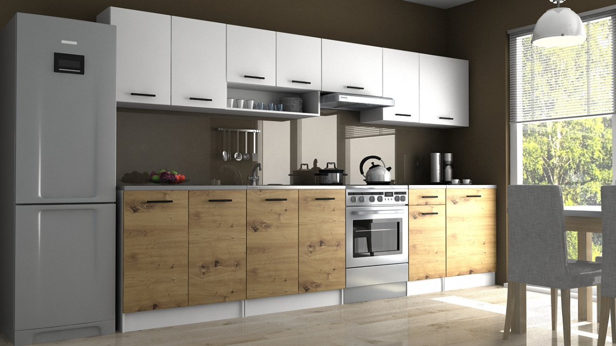 Kuchyňská linka Luigi je ideální volbou pro Vaši kuchyň. Je moderní a zároveň i praktická. Skříňky nabízejí dostatek úložného prostoru. Je vyrobená z lamina, které je odolné a snadné na údržbu. Díky svým rozměrům je vhodná i do malých kuchyní. Skříňky si můžete sestavit libovolně. Kuchyňská linka je dodávaná v demontu. Součástí balení je montážní plánek včetně všech potřebných spojovacích materiálů. Cena je uvedna za sestavu vyobrazenou na úvodní fotografii BEZ PRACOVNÍ DESKY. Kuchyň nabízíme v několika rozměrech i dekorech.Vyobrazené spotřebiče, dřez a dekorace nejsou v ceně.