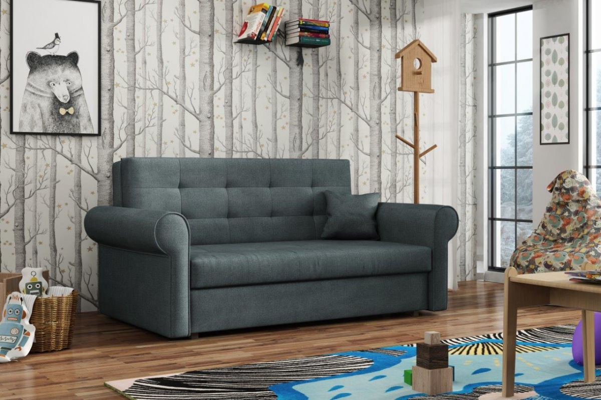 Rozkládací pohovka Vivian je díky svým rozměrům vhodná i do menších pokojů. Své uplatnění najde nejen v obývacím pokoji, ale také v dětském, studentském, nebo hostinském pokoji. Jednoduchým rozložením pomocí automatu, získáte lůžko k příležitostnému přespání Vaší návštěvy. Výplň sedáku tvoří vlnité pružiny v kombinaci s PUR pěnou. Pohovka je potažena kvalitní látkou a nabízíme ji v několika trendy odstínech. Pohovka disponuje i nepostradatelným úložným prostorem, který využijete např. na deku a polštář. V ceně pohovky je 1 dekorační polštář. Ostatní vyobrazené dekorace nejsou v ceně. Zobrazení barev produktu na fotograii se může nepatrně lišit od skutečnosti. Zobrazení barev na fotograii se může od skutečnosti lišit.
