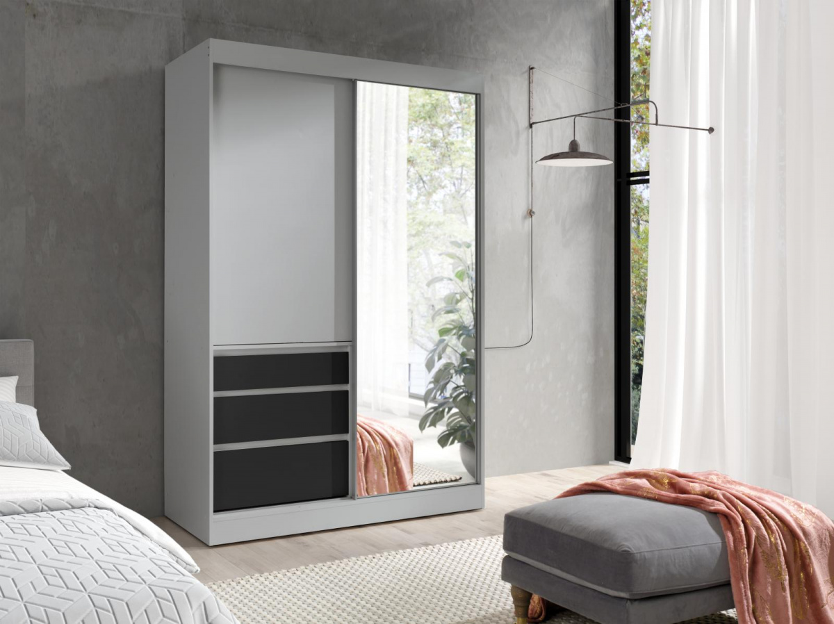 Šatní skříň Havana je vyrobena z kvalitního lamina, které je odolné a snadné na údržbu. Díky svému provedení s posuvnými dveřmi a třemi zásuvkami šetří místo. Zrcadlo na dveřích místnost opticky zvětší a prosvětlí. Vnitřní uspořádání skříně je praktické a poskytuje dostatek úložného prostoru. Skříň je dodávána v demontu a nabízíme ji ve několika barevných provedeních. Součástí balení je montážní plánek včetně všech potřebných spojovacích materiálů. Vyobrazené doplňky a dekorace nejsou v ceně