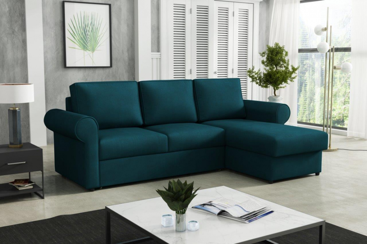 Sedací souprava Maiden, je příjemným spojením elegance, funkčnosti a pohodlí. Sedací souprava je vyrobená v nadčasovém designu a hodí se do každého interiéru. Díky svým rozměrům je vhodná i do menších pokojů. Je velmi pohodlná a zároveň praktická. Velkou předností sedací soupravy, je univerzální použití. Tzn. že si ji můžete podle potřeby sestavit jako levou nebo pravou, což je výhoda při zařizování obývacího pokoje. Nemusíte přemýšlet do jakého rohu sedací soupravu postavíte. Jednoduše si ji podle potřeby přizpůsobíte. Výplň sedáku tvoří vlnovité pružiny v kombinaci s kvalitní PUR pěnou. Praktickou stránku sedací soupravy zajišťuje možnost rozložení k občasnému přespání návštěvy a samozřejmostí je i úložný prostor na lůžkoviny. Sedací soupravu nabízíme v několika trendy odstínech. Vyobrazené doplňky a dekorace nejsou v ceně. Zobrazení barev na fotografii se může od skutečnosti lišit.