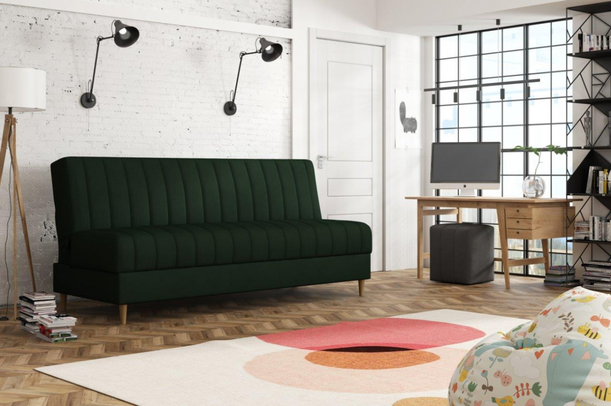Pohovka Ejmy Mini v sobě spojuje eleganci, funkčnost a příznivou cenu. Je vyrobená v jednoduchém nadčasovém designu, který se hodí do každého inferiéru. Díky svým rozměrům se lehce vejde i do menší místnosti. Umístit ji můžete nejen do obývacího pokoje, ale také např. do pracovny, nebo hostinského pokoje. Pohovka je rozkládací. Jednoduchým rozložením získáte lůžko k občasnému přespání Vaší návštěvy. Samozřejmostí je i praktický úložný prostor, který můžete využít třeba na lůžkoviny. Pohovku nabízíme v několika barevných provedeních. Vyobrazené doplňky a dekorace nejsou v ceně. Zobrazení barev na fotografii se může od skutečnosti lišit.