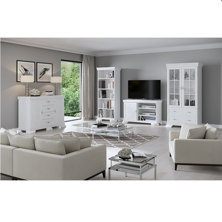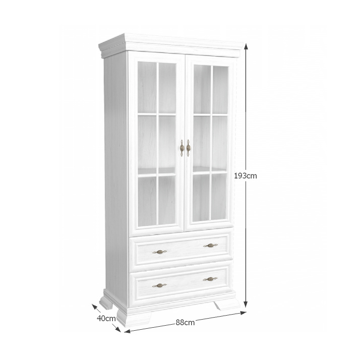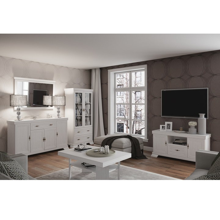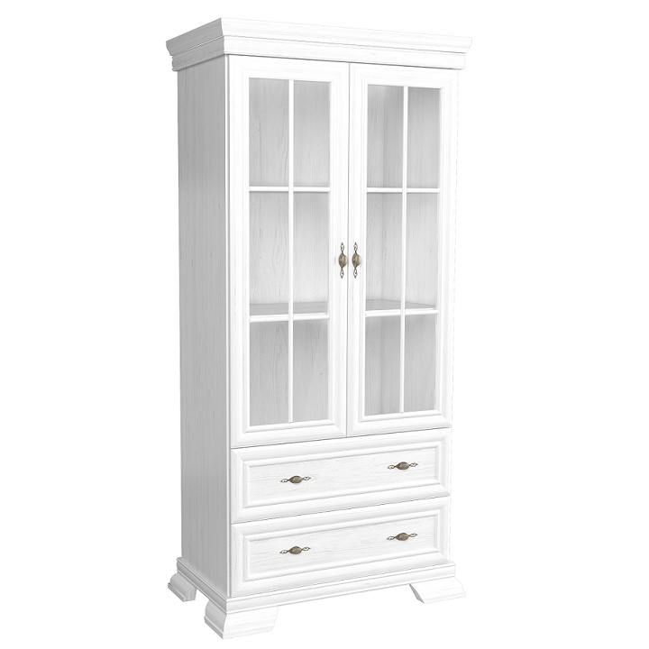 Vitrína KRW2 KORA. Barevné provedení sosna andersen. Materiál laminovaná DTD, MDF, kov, sklo.