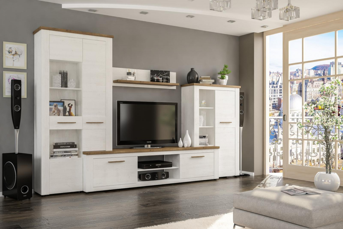 Bytová stěna Monty je vyrobená z lamina. Vrchní desky mají tl. 32 mm. Stěna krásně doplní byt ve venkovském i moderním stylu. Nabízí dostatek úložného prostoru, který je v každé domácnosti nezbytný. Cena je uvedna za komplet na fotografii bez doplňků, elektroniky a dekorací. Všechny prvky, ze kterých se stěna skládá, jsou dodávané v demontu. Součástí balení je montážní plánek, včetně všech spojovacích prvků.