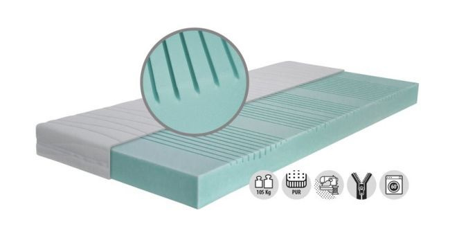 Elena je polohovací válenda s elastickou PUR matrací, která je uložena na lamelovém roštu. Plocha pro spaní je 90x200 cm s komfortní výškou lehací plochy 53 cm. Speciálně strukturovaný povrch jádra matrace zajišťuje dobré přizpůsobení se tělu a optimální proudění vzduchu. To je důležité pro dosažení správného spánkového klimatu. Rošt je vybavený polohováním pro hlavu (5 poloh) i nohy (1 poloha). Samozřejmostí je i velký úložný prostor na lůžkoviny, který je přístupný od nohou. Zobrazení barev na fotografii se může od skutečnosti lišit.