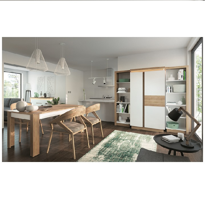 Regál LYOR01 pravý ze sektorové sestavy LEONARDO v provedení dub riviera / bílá
