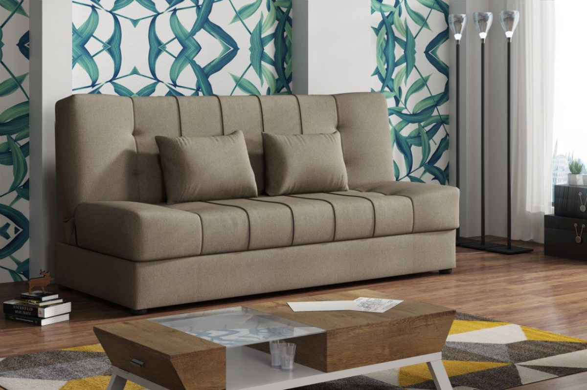 Pohovka Sun je příjemným spojením elegance, funkčnosti a atraktivní ceny. Skvěle doplní design Vašeho obývacího pokoje, ale je také vhodná např. do studentského pokoje, pracovny, nebo hostinského pokoje. Pohovka je rozkládací. Jednoduchým rozložením pomocí systému klik klak, získáte lůžko k občasnému přespání Vaší návštěvy. Samozřejmostí je i praktický úložný prostor, který můžete využít třeba na lůžkoviny. Pohovku nabízíme v několika trendy barevných provedeních. V ceně pohovky jsou 2 dekorační polštářky. Ostatní vyobrazené doplňky a dekorace nejsou v ceně. Úvodní fotografie je ilustrační. Pohovka bude dodaná v potahové látce, která je vyobrazená na vzorku v doplňkových fotografiích. Zobrazení barev se může od skutečnosti lišit.