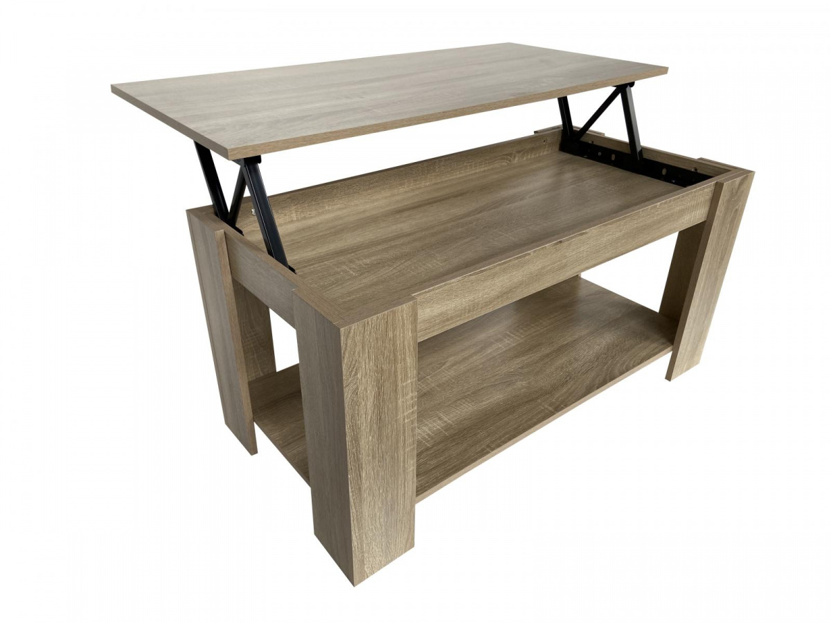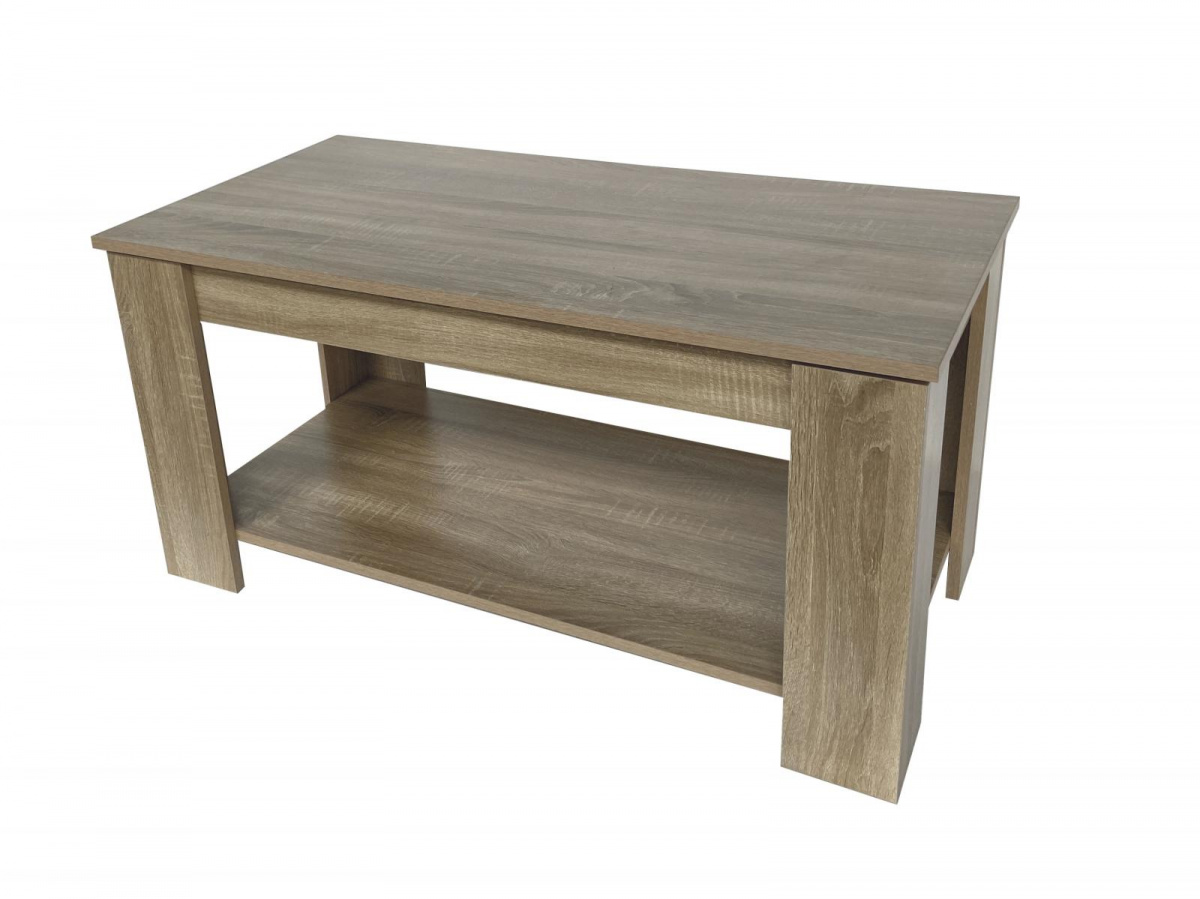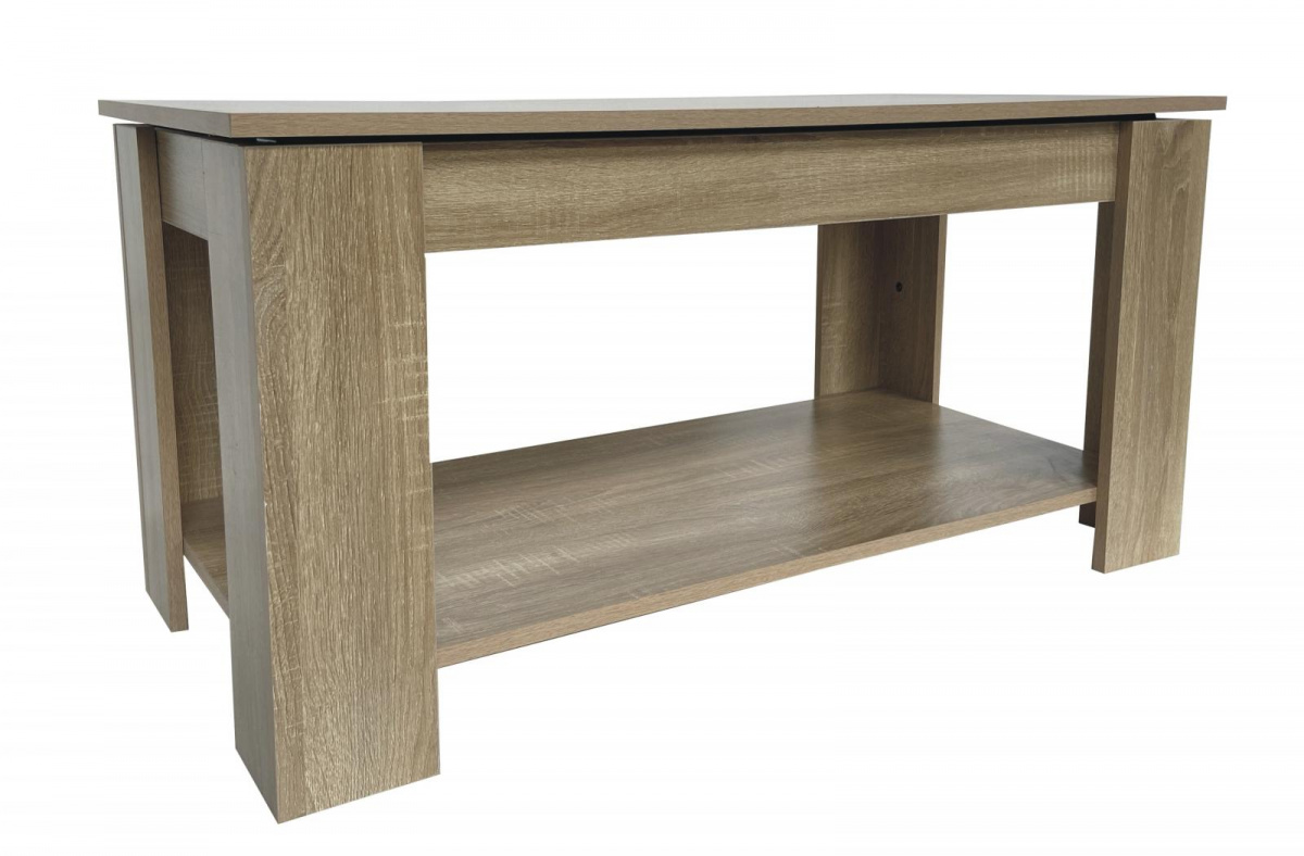 Konferenční stolek Lotti je vyrobený z lamina v oblíbeném dekoru dub sonoma. Deska stolku se dá pomocí speciálního mechanizmu zvednout a tím získáte pracovní místo třeba pro práci na notebooku. Tuto funkci oceníte v případě nedostatku prostoru pro pracovní stůl. Pod zvednutou stolovou deskou se ukrývá důmyslný úložný prostor na časopisy, knihy apod. Výška stolku v základní poloze je 50 cm. Váýška po zvednutí desky je 64 cm. Stolek je dodávaný v demontu. Součástí balení je schématický montážní návod, včetně všech potřebných spojovacích prvků.