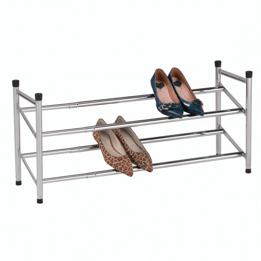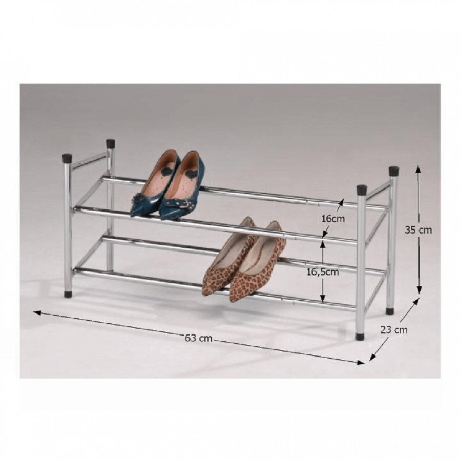 2-řadový nastavitelný botník TEA Materiál: chrom Provedení chromovaná / černá Rozměry (ŠxHxV): 63-110x23x35 cm Nastavitelná šířka botníku Dodávané v demontu