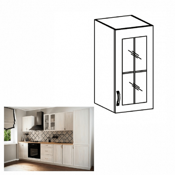 Horní skříňka G40S se sklem, pravá, bíla/sosna Andersen, SICILIA