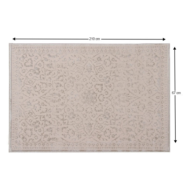 Koberec ROHAN v krémové barvě se vzorem, vyrobený z materiálů polyester a viskóza.