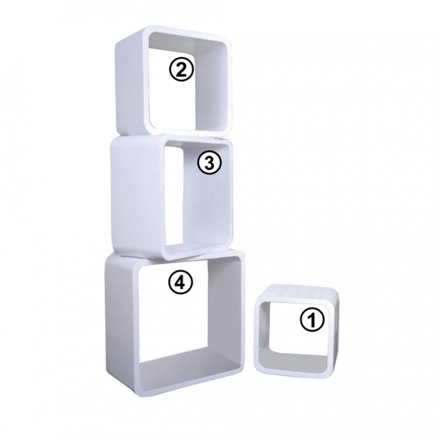 sada polic - 4 ks, materiál: MDF, provedení: bílá, rozměry ŠxVxH: 1 - 26x26x20 cm, 2 - 31x31x20 cm, 3 - 36x36x20 cm, 4 - 41x41x20 cm.