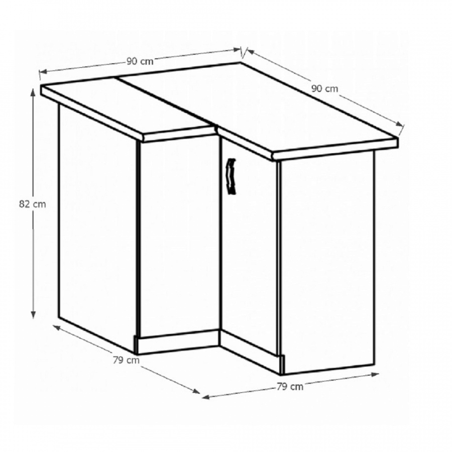 Spodní rohová skříňka D90N ke kuchyni SICILIA Provedení: DTD laminovaná/MDF lišty Barva: ořech Milano Rozměry (ŠxHxV): 79/90x79/90x82 cm Tloušťka materiálu: 15 mm Spodní skříňky jsou dodávány bez pracovní desky. Cena za pracovní desku pískovec k provedení ořech Milano je 990 - Kč / bm - tloušťka 28mm. Cena za pracovní desku dub Lancelot k provedení sosna andersen je 1.240, - Kč / bm - tloušťka 38 mm.