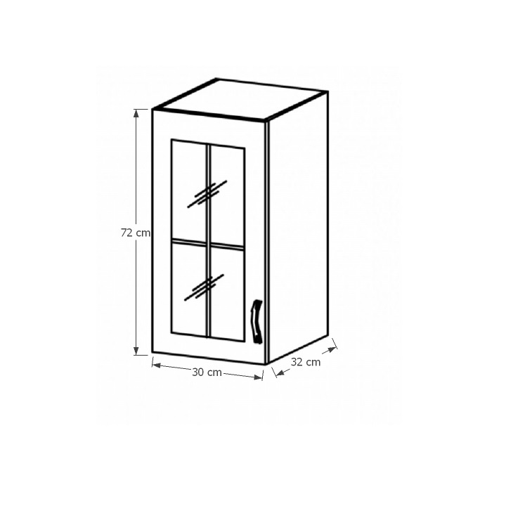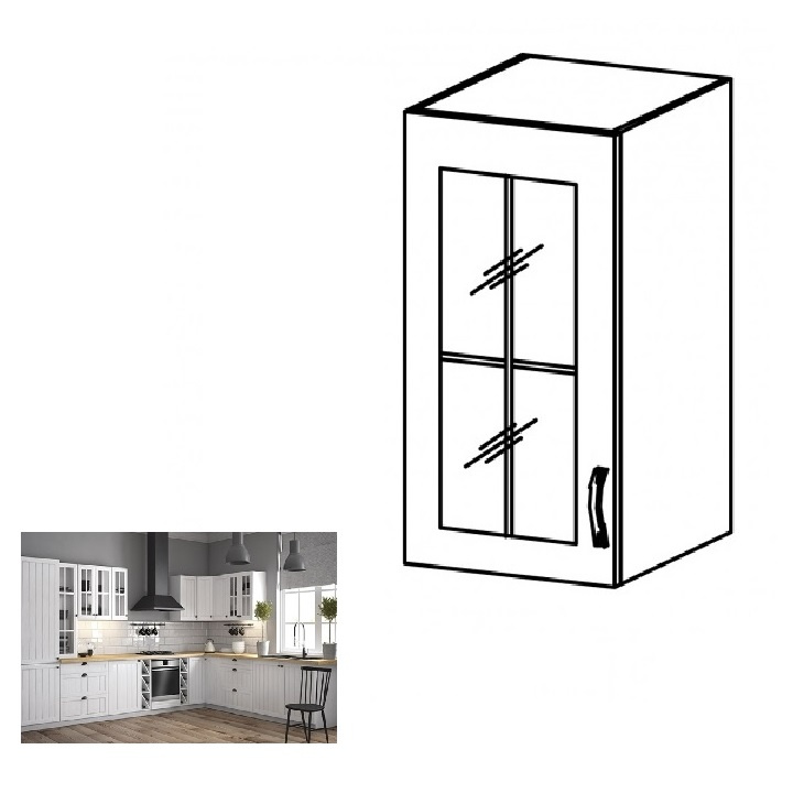 Horní levá skříňka s dvířky se sklem a jednou policí ke kuchyni Provance