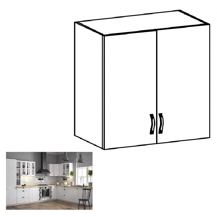 Horní skříňka s dvěma dvířky a jednou policí ke kuchyni Provance Provedení: DTD laminovaná / MDF Barva: bílý / sosna andersen Rozměry (ŠxHxV): 80x32x72 cm Tloušťka materiálu: 15 mm Spodní skříňky jsou dodávány bez pracovní desky. Pracovní deska v tloušťce 3 cm. Ke spodním skříňkám je třeba doobjednat sokl. Ke každé spodní skříňce, kromě dřezové D25PZ, je třeba doobjednat ještě 2 kusy úchytů na sokl. Cena za pracovní desku dub lancelot je 1.240, - Kč za bm- tloušťka je 38 mm, cena za spodní lištu je 270, - Kč za bm. Ke každé dolní skříňce, kromě D25PZ, je třeba doobjednat 2 ks úchytek na sokl - cena 20, - Kč / 2Ks.