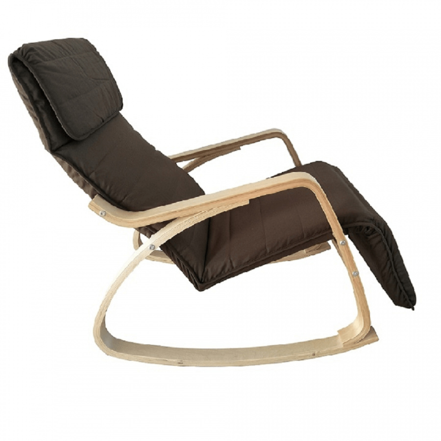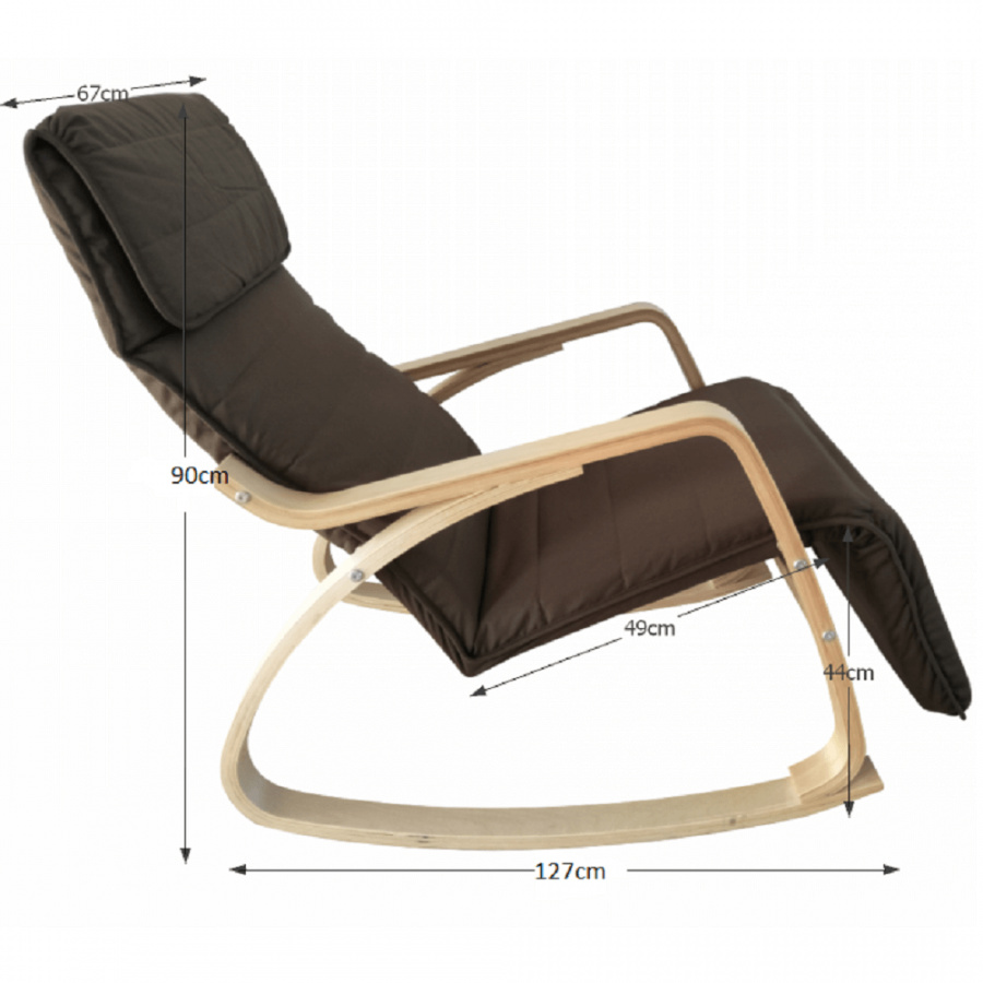 Houpací křeslo vhodné do jakéhokoliv interiéru. Materiál: hnědá látka, konstrukce natural březové dřevo. Rozměry ŠxHxV: 67x127x90cm Hloubka sezení: 49cm Výška sedu: 44 cm